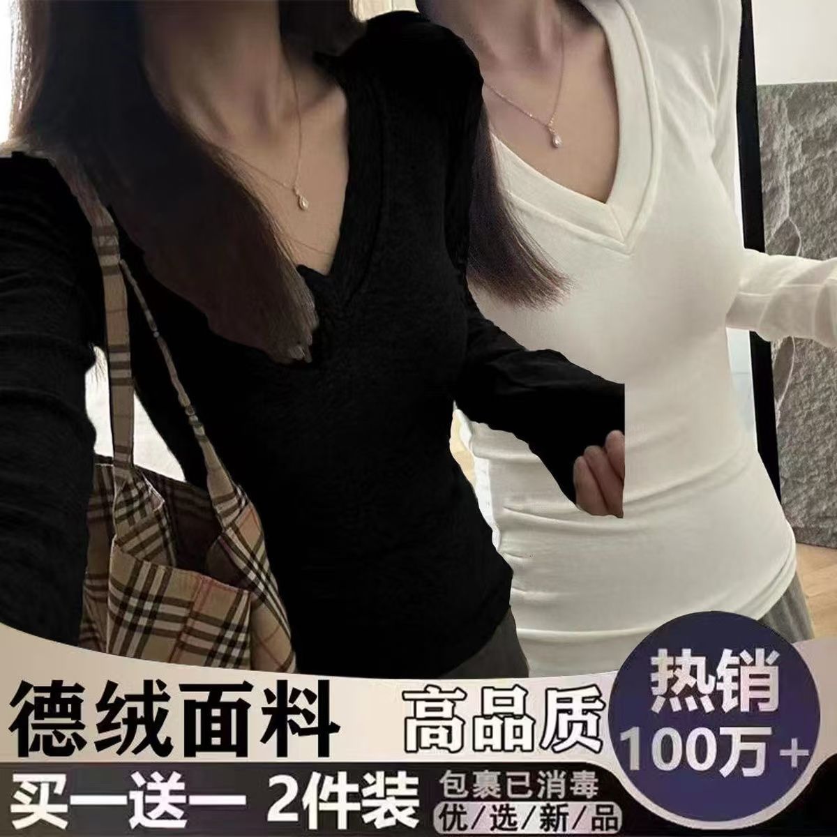 女款 辣妹内搭保暖加厚长袖 V领修身 新款 上衣 显瘦秋冬季 德绒打底衫
