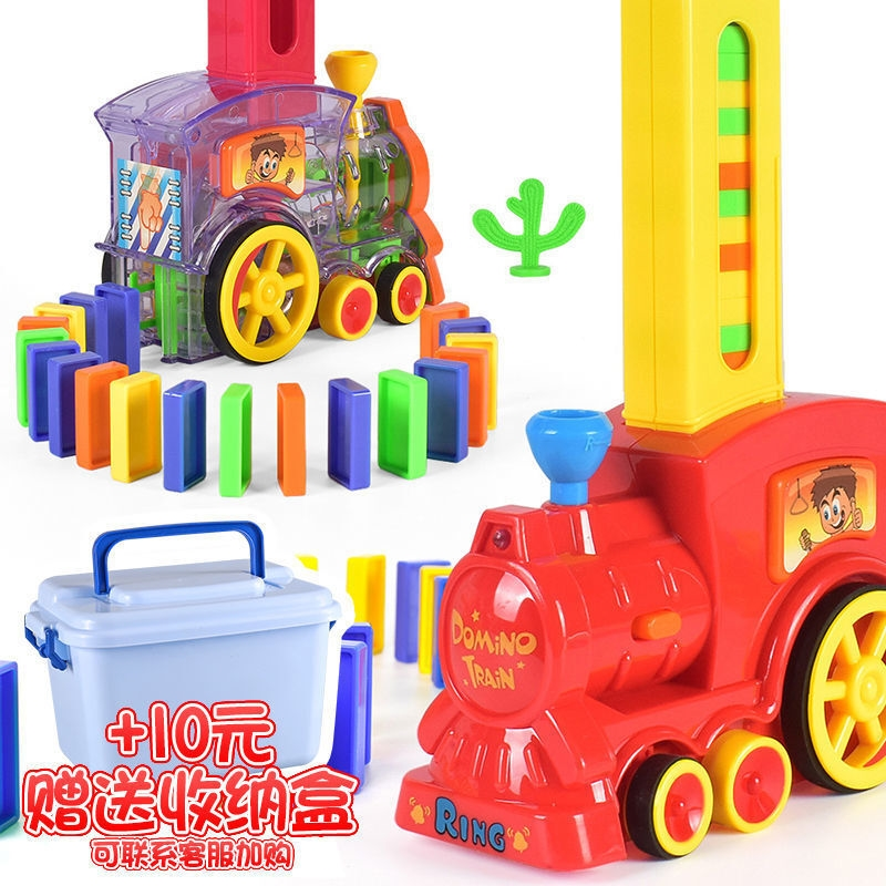 多米诺骨牌火车积木自动摆发牌火车宝宝儿童玩具