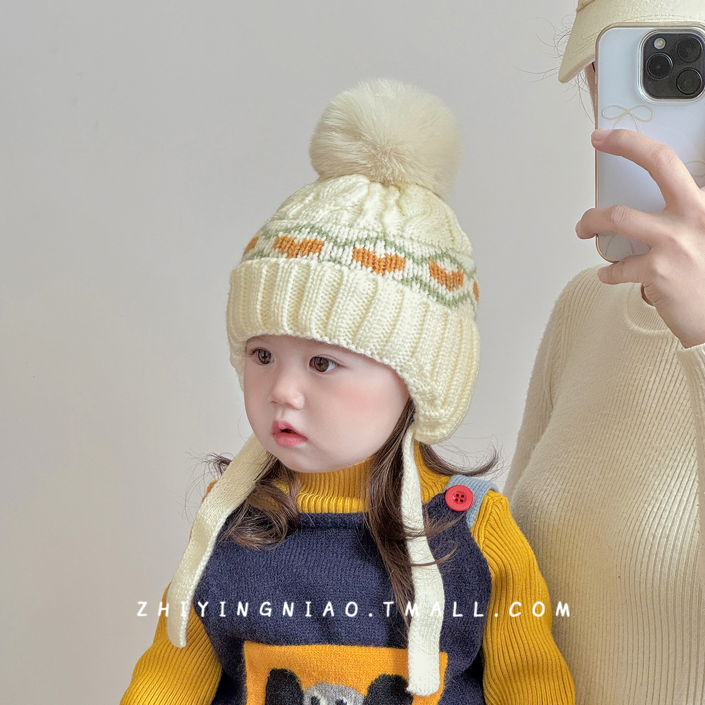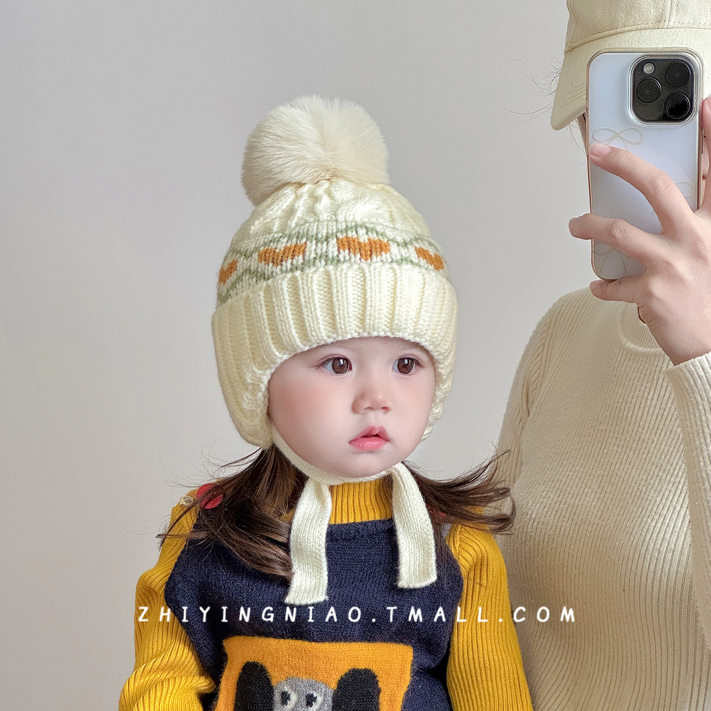 婴儿帽子秋冬季 百搭护耳帽加厚保暖防风针织帽女童 宝宝毛线帽韩版