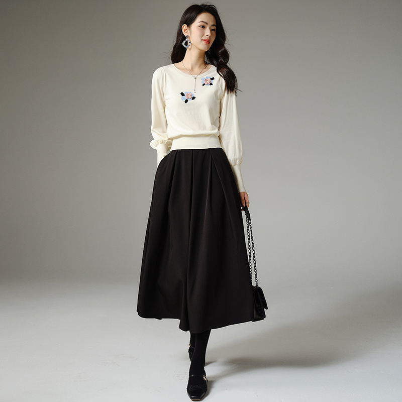 女 百搭套头针织衫 晚白2025年秋新款 莱赛尔圆领上衣气质修身