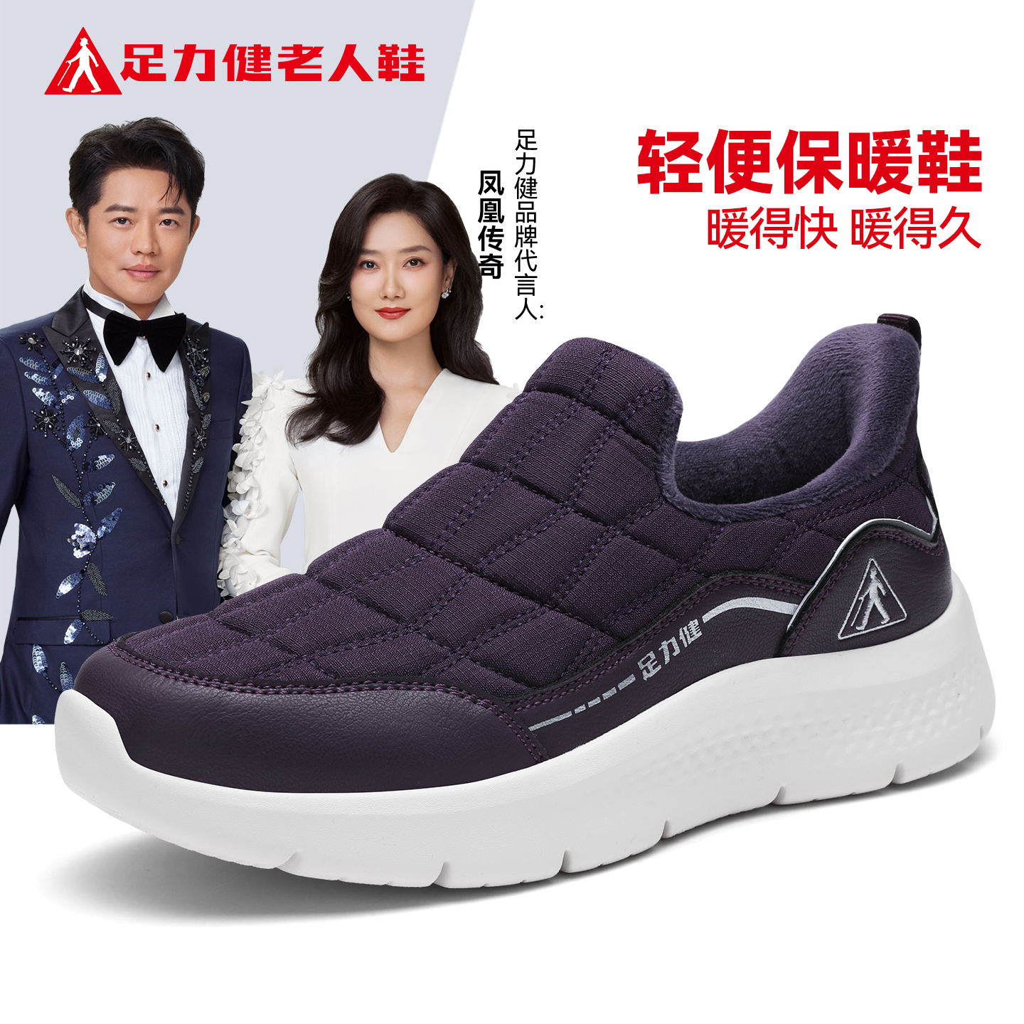 一脚蹬健步鞋 足力健老人鞋 加绒保暖棉鞋 中老年妈妈冬季 旗舰店正品