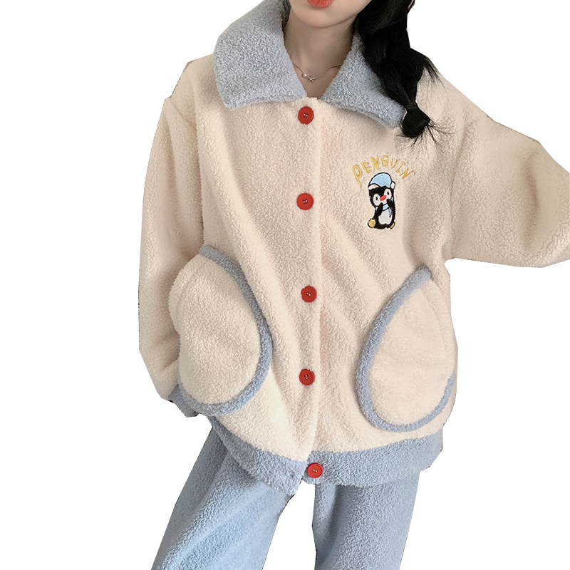 可爱卡通家居服套装 加绒加厚2025年新款 秋冬季 猫人半边绒睡衣女款
