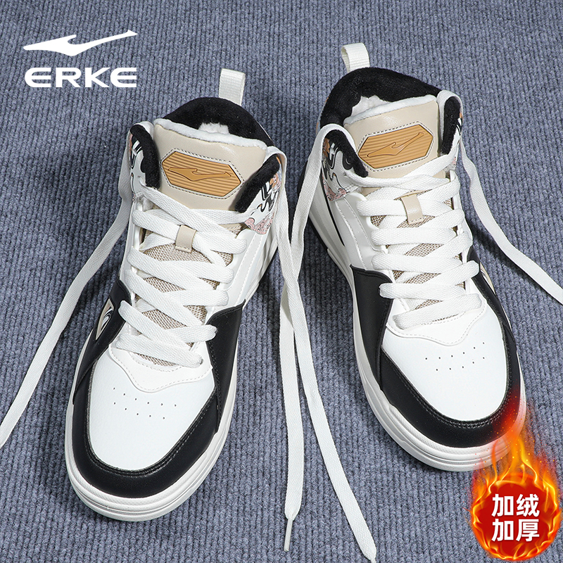 厚底加绒保暖软底运动鞋 鸿星尔克二棉鞋 男2025新款 高帮板鞋 子 男鞋