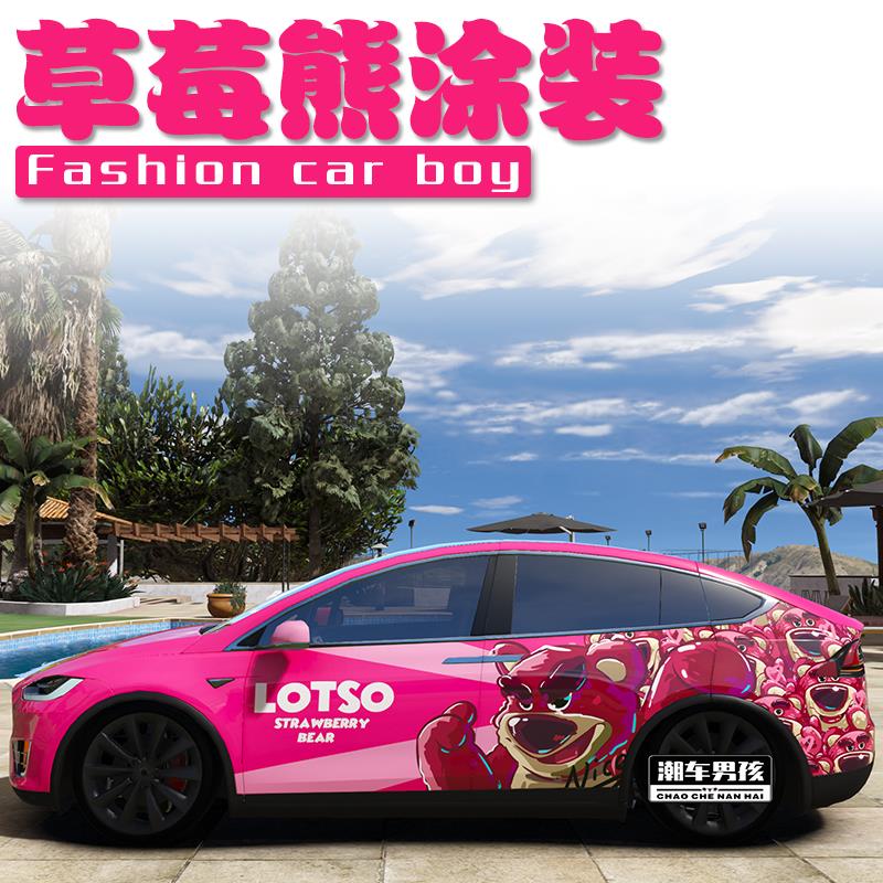 定制 个性 适用特斯拉ModelX 极氪001全车膜草莓Lotso汽车彩绘涂装
