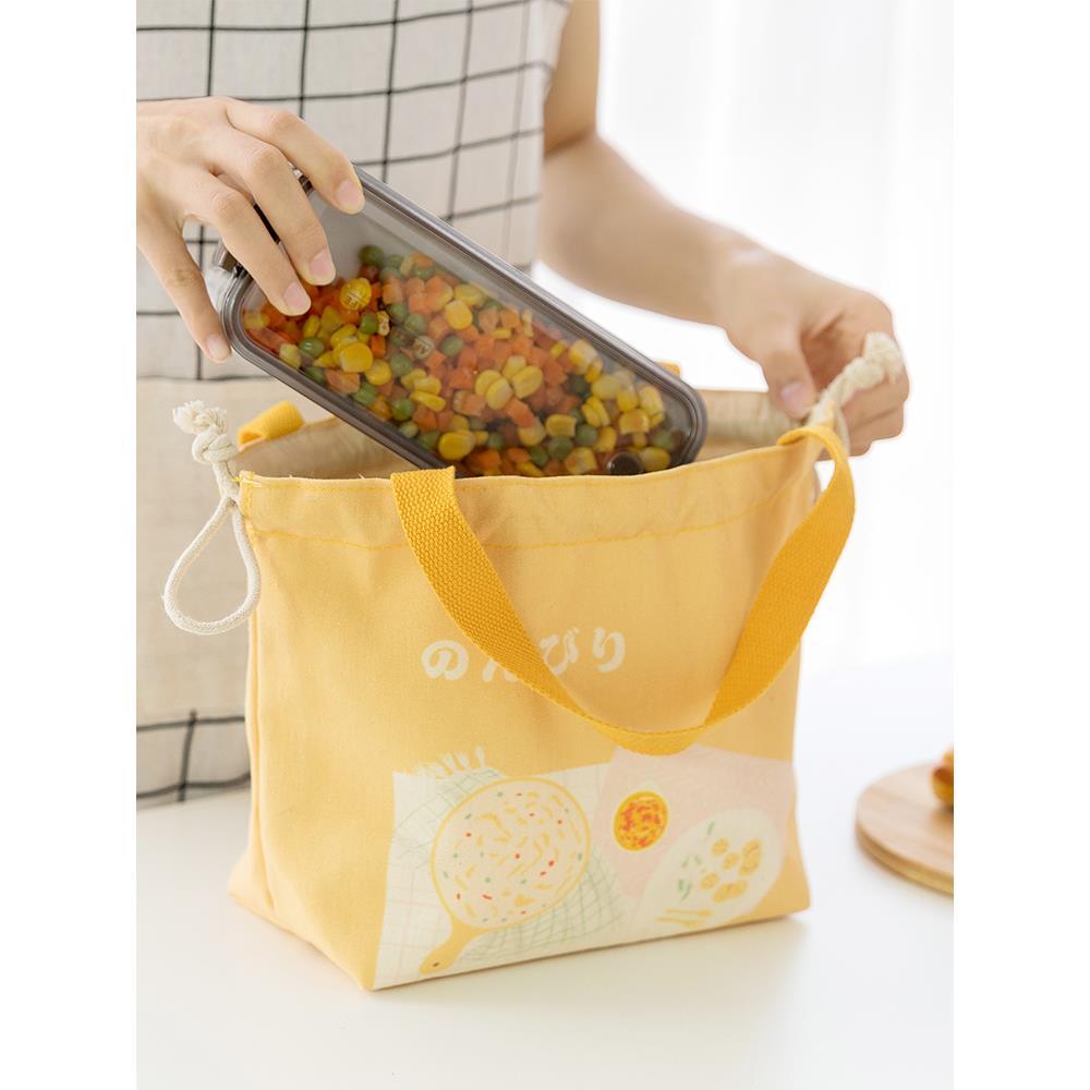 日式 保温饭盒袋上班族简约可爱手提包帆布学生饭盒包便当包饭袋子