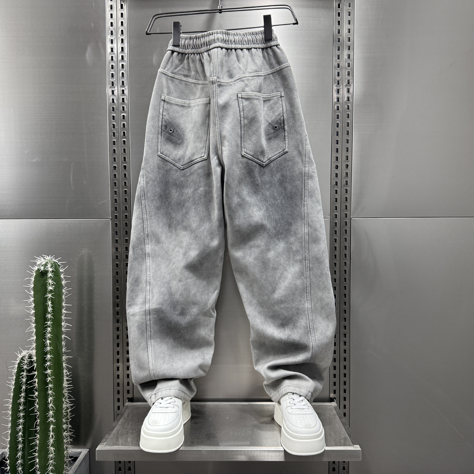 百搭晕染脏脏直筒裤 美式 男2025秋冬款 潮流高街痞帅宽松牛仔弯刀裤