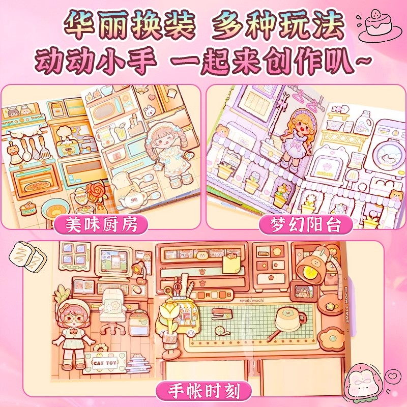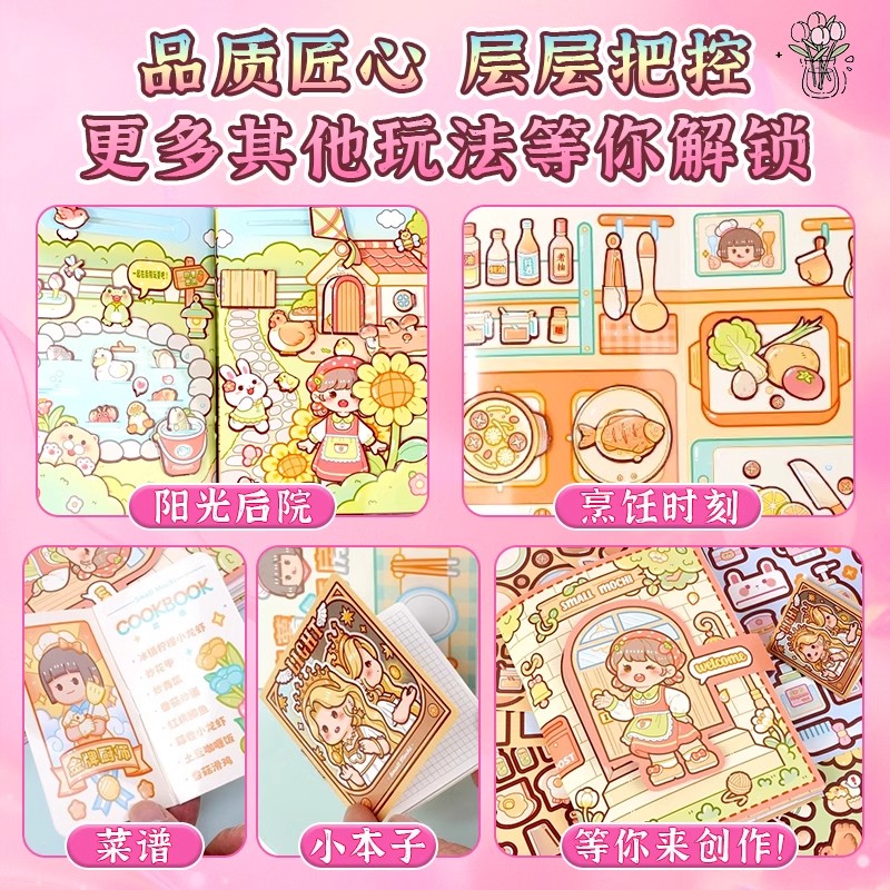 造景贴纸微缩场景合集本3d贴画立体免裁剪手账贴纸书女孩儿童益智玩具手工diy装 饰小型屋儿童卡通贴纸颜值高