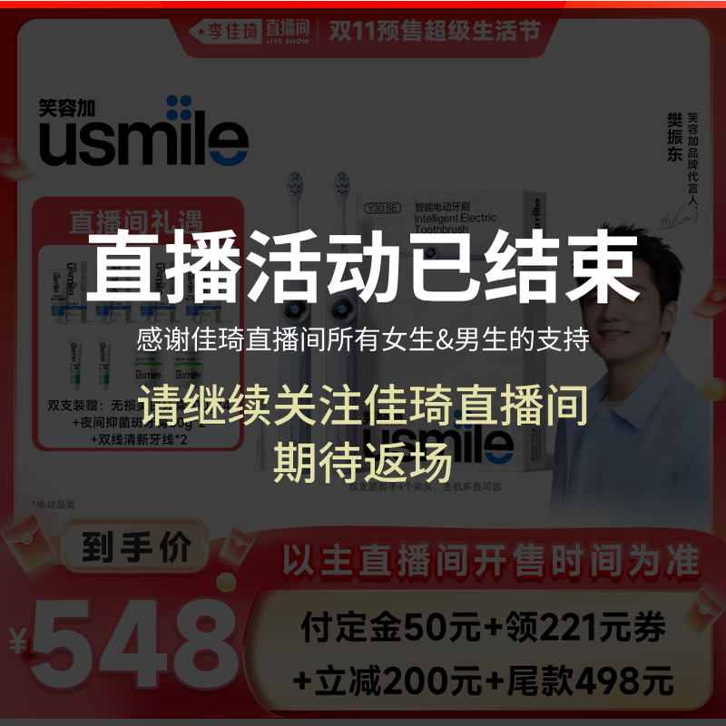 usmile笑容加智能电动牙刷Y30SE 李佳琦直播间生活节付定金