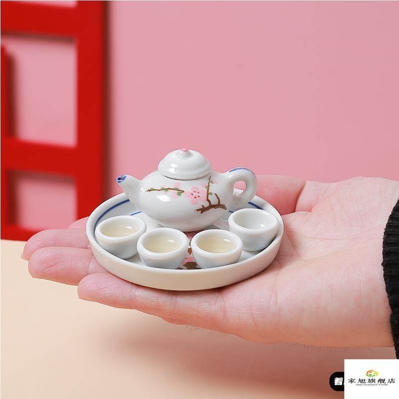 儿童扮家家酒微缩食玩场景模型娃娃屋配件迷你陶瓷茶具茶杯茶壶套