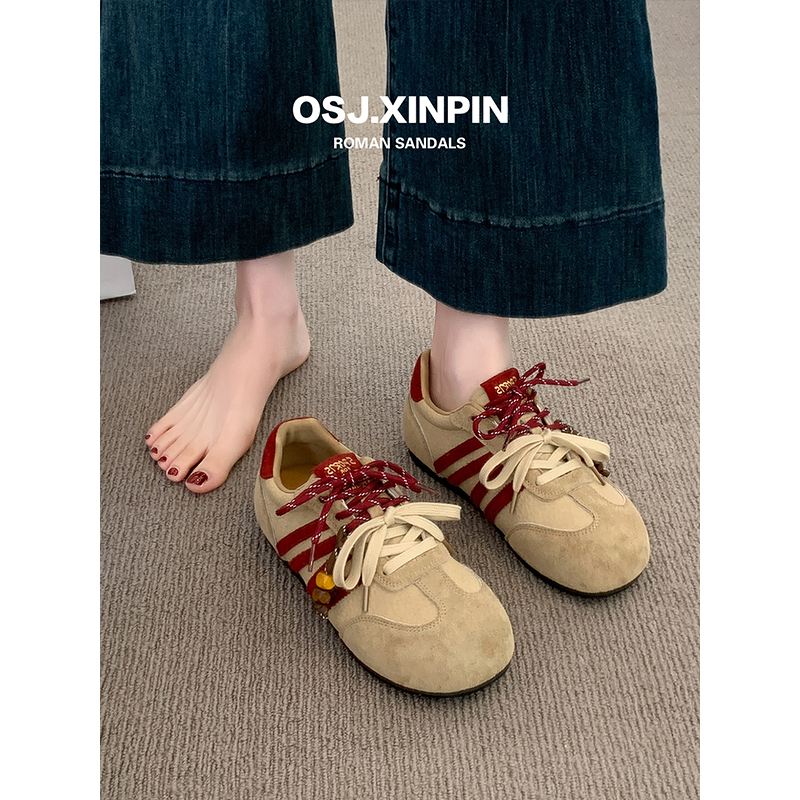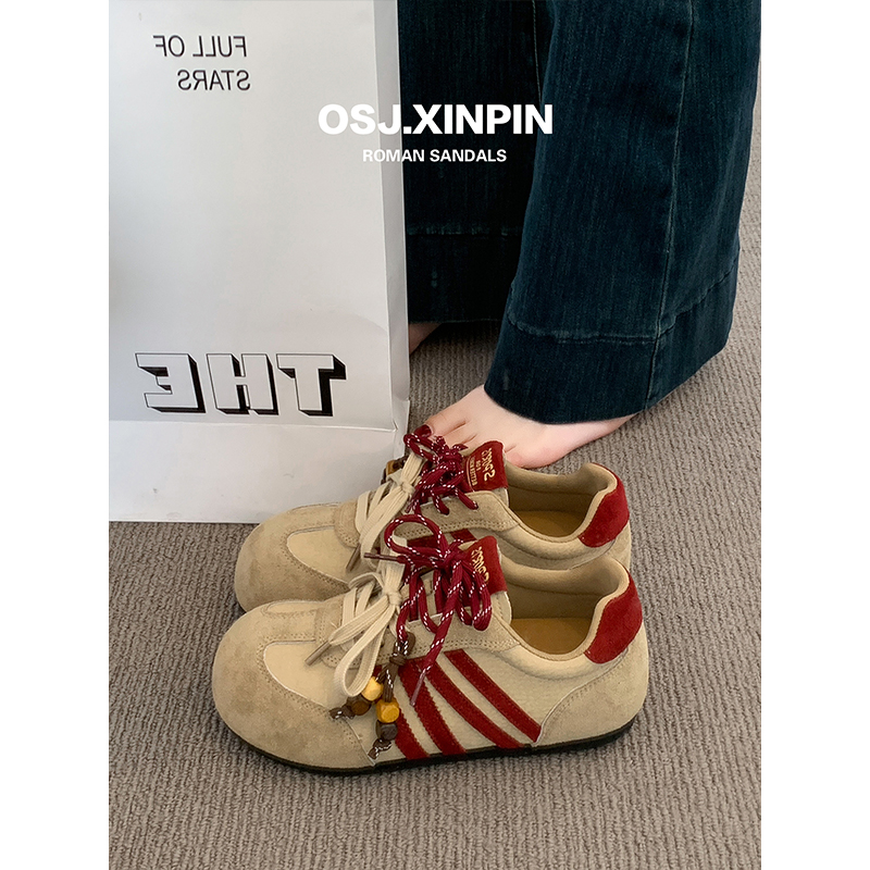 百搭小众设计感轻便休闲运动鞋 环球红色德训鞋 秋季 2025新款 潮 女款