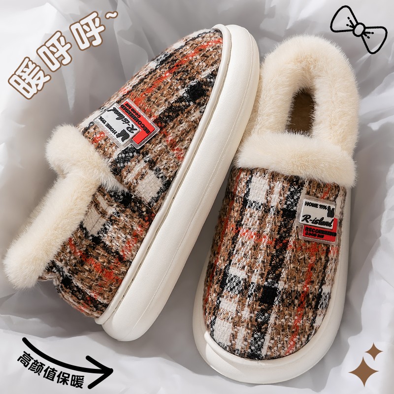 室内居家用情侣加绒加厚包跟男外穿月子棉鞋 冬季 女2025新款 棉拖鞋