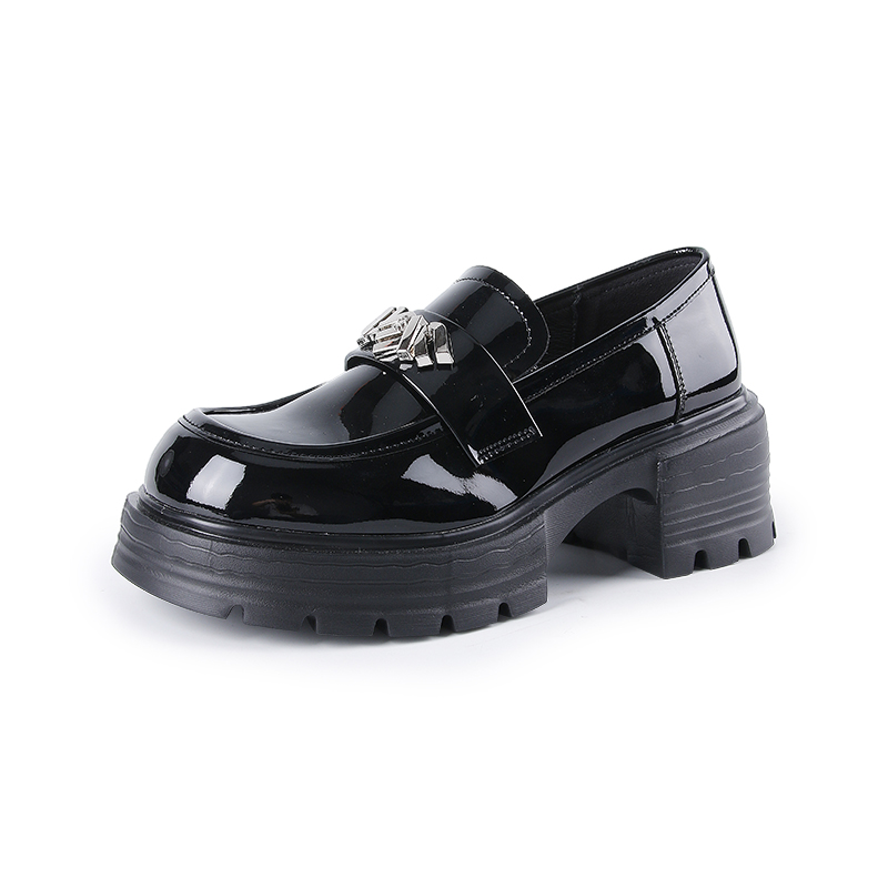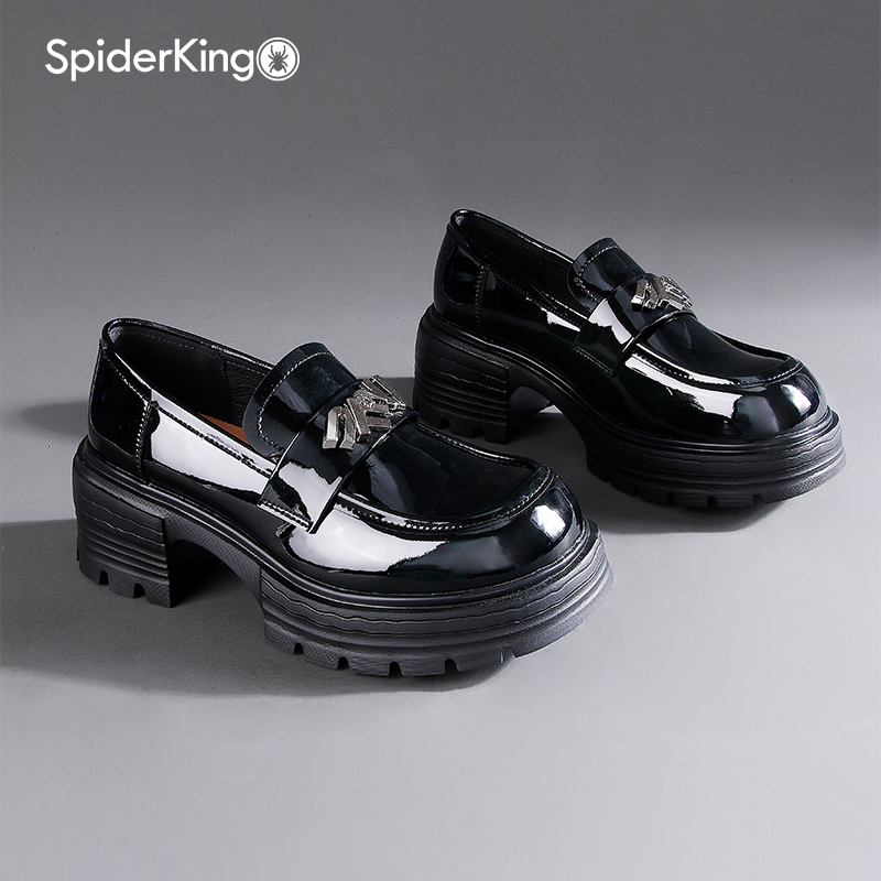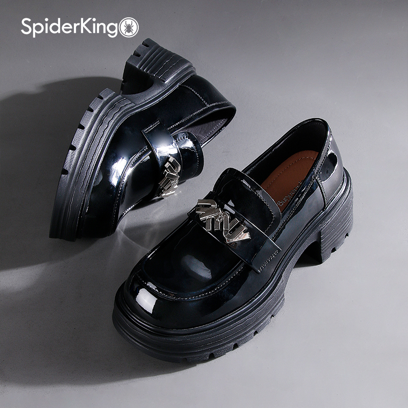轻便一脚蹬单鞋 蜘蛛王漆皮厚底乐福鞋 女士2025春秋英伦风JK小皮鞋