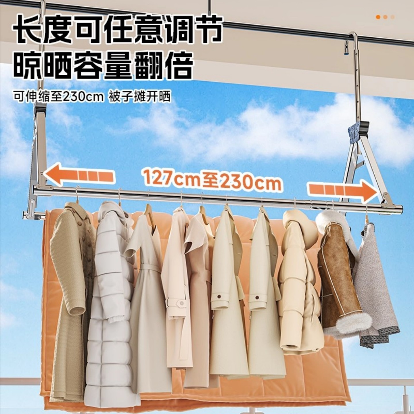 晾衣杆阳台升降伸缩家用晾衣架不锈钢悬挂式 晒被子神器水槽沥水袋