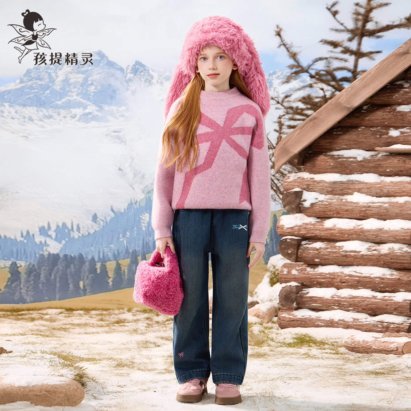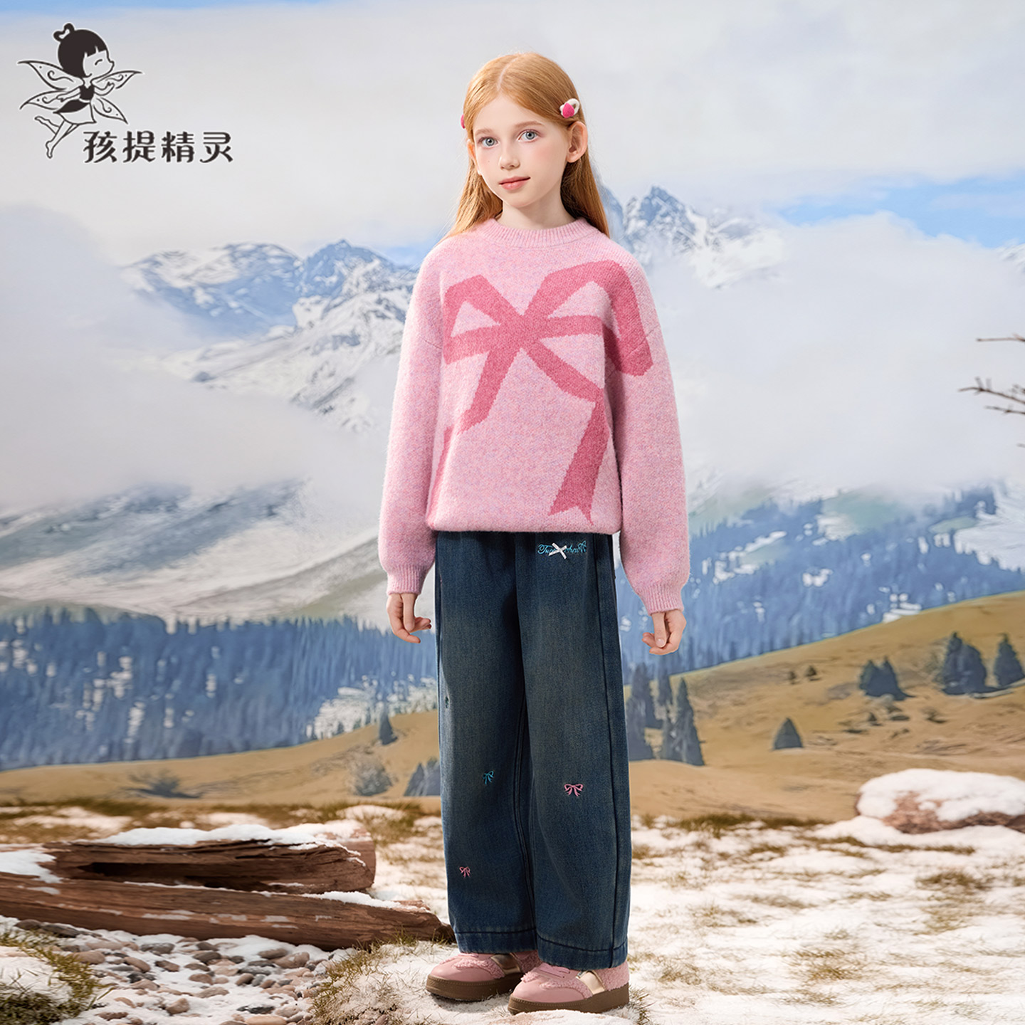 儿童毛线衣 洋气中大童打底衫 女童蝴蝶结圆领套头毛衣2025冬装 新款
