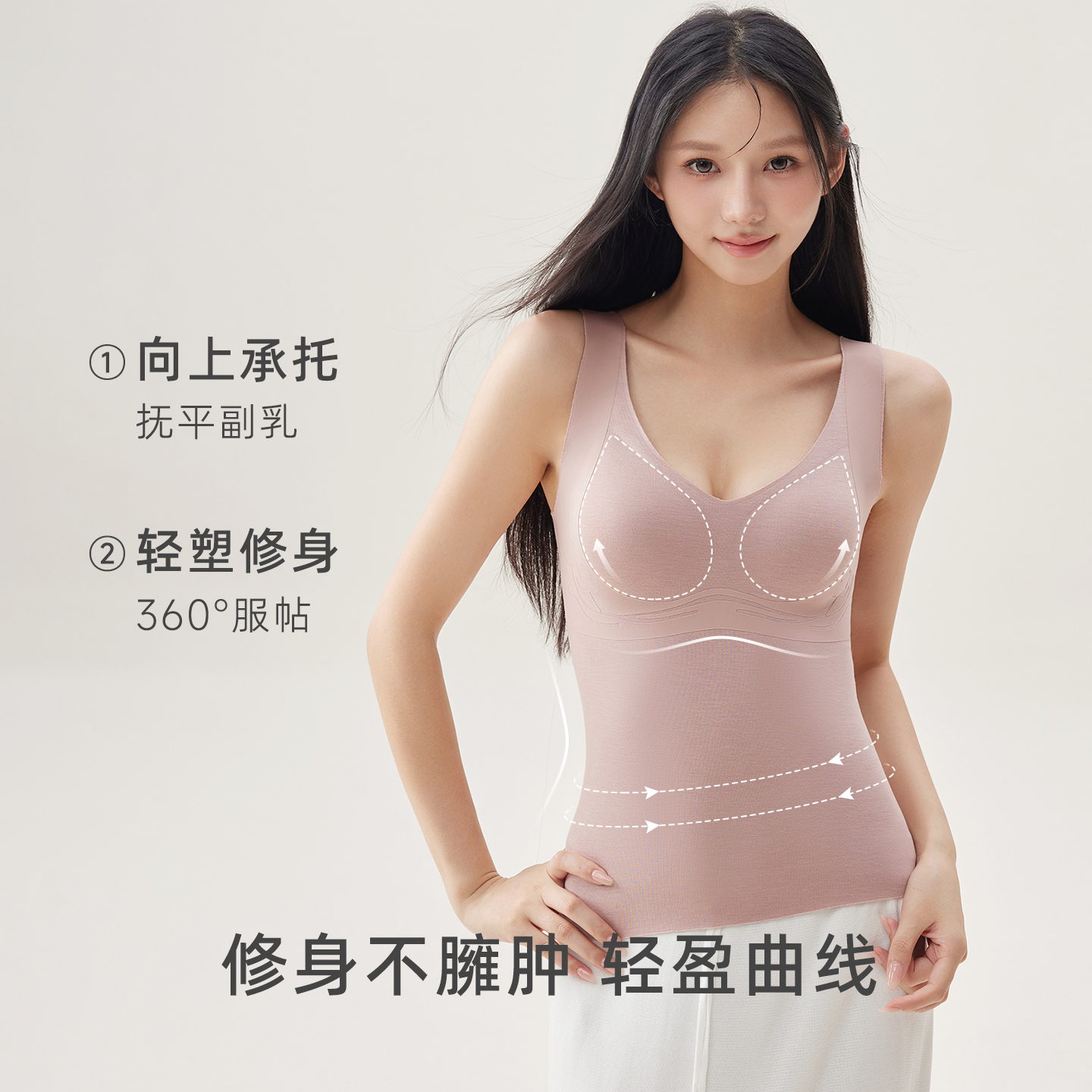 贵夫人塑身保暖背心女士2026新款 无痕绒面打底内搭 带胸垫秋冬季