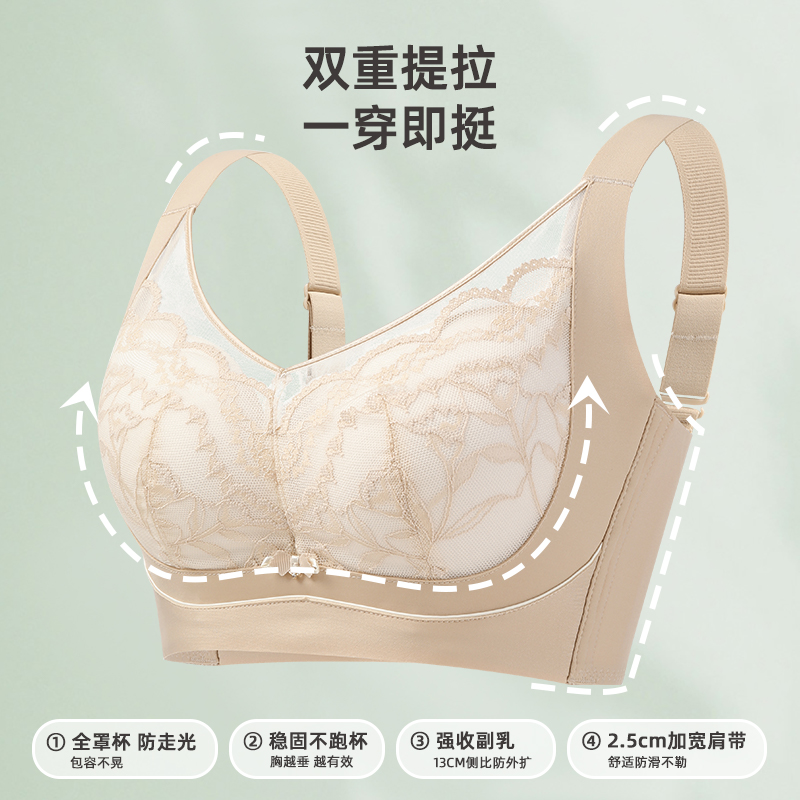 无痕内衣女收副乳聚拢防下垂小胸显大中年妈妈蕾丝舒适透气文胸罩