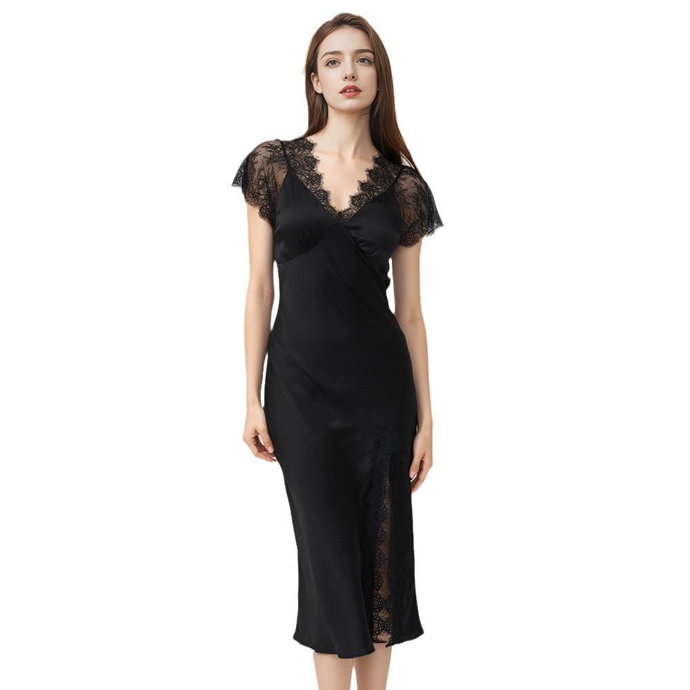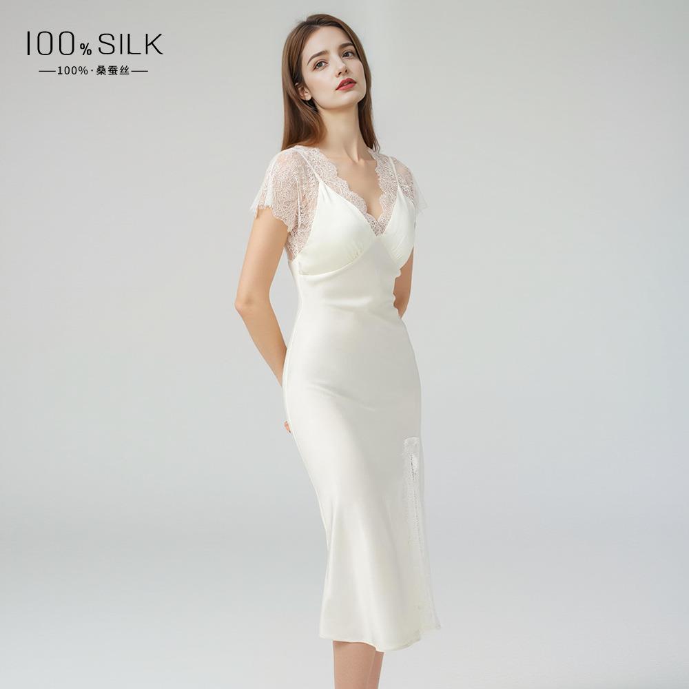 19姆米重磅真丝睡裙女修身 高级感气质开衩带胸垫桑蚕丝绸吊带睡裙