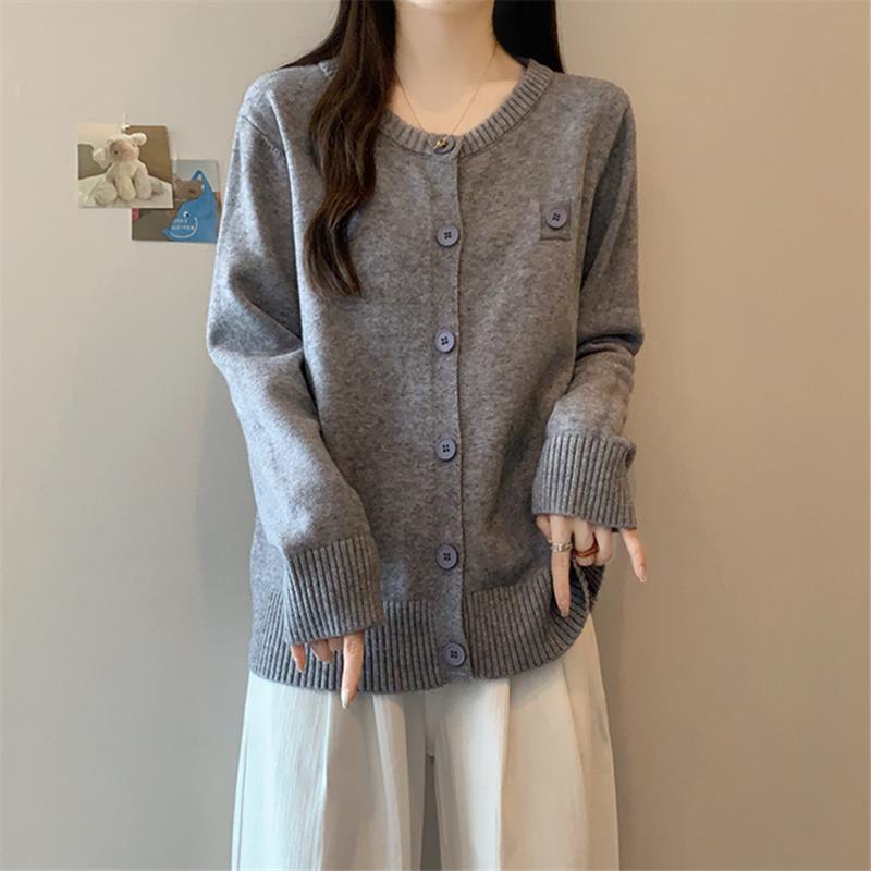 灰色圆领休闲针织衫 飞鸟和新酒刺绣时尚 新款 女2025秋季 毛衣开衫