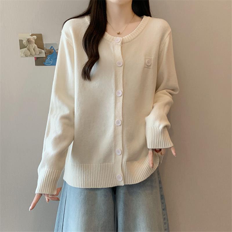 蓝色毛衣外套 上衣灰色圆领全棉线薄款 纯棉bm针织开衫 女早秋长袖