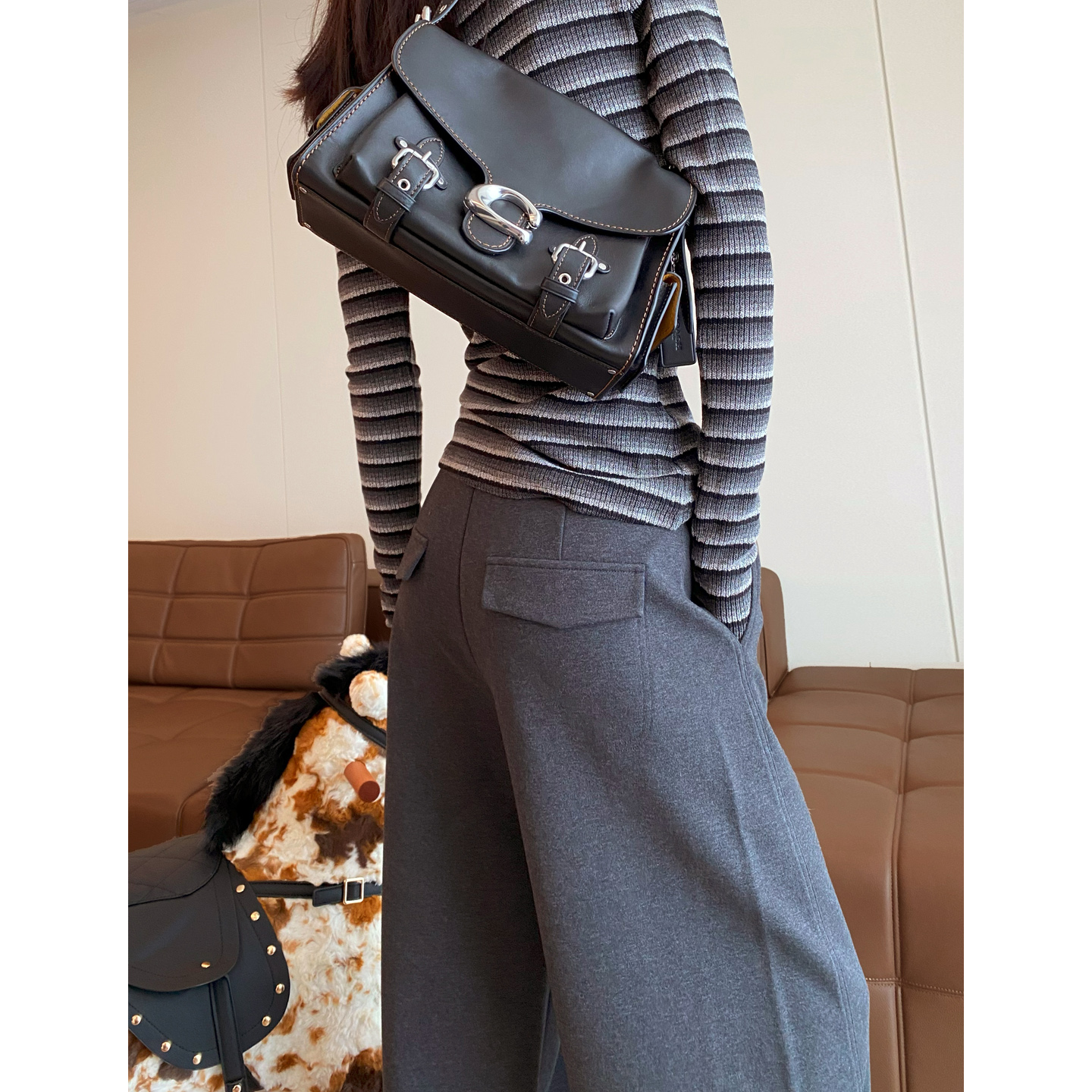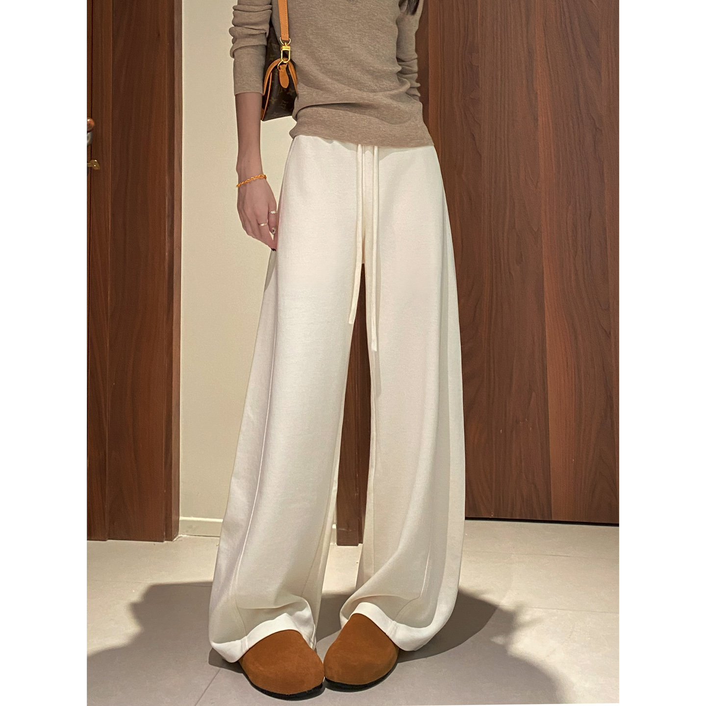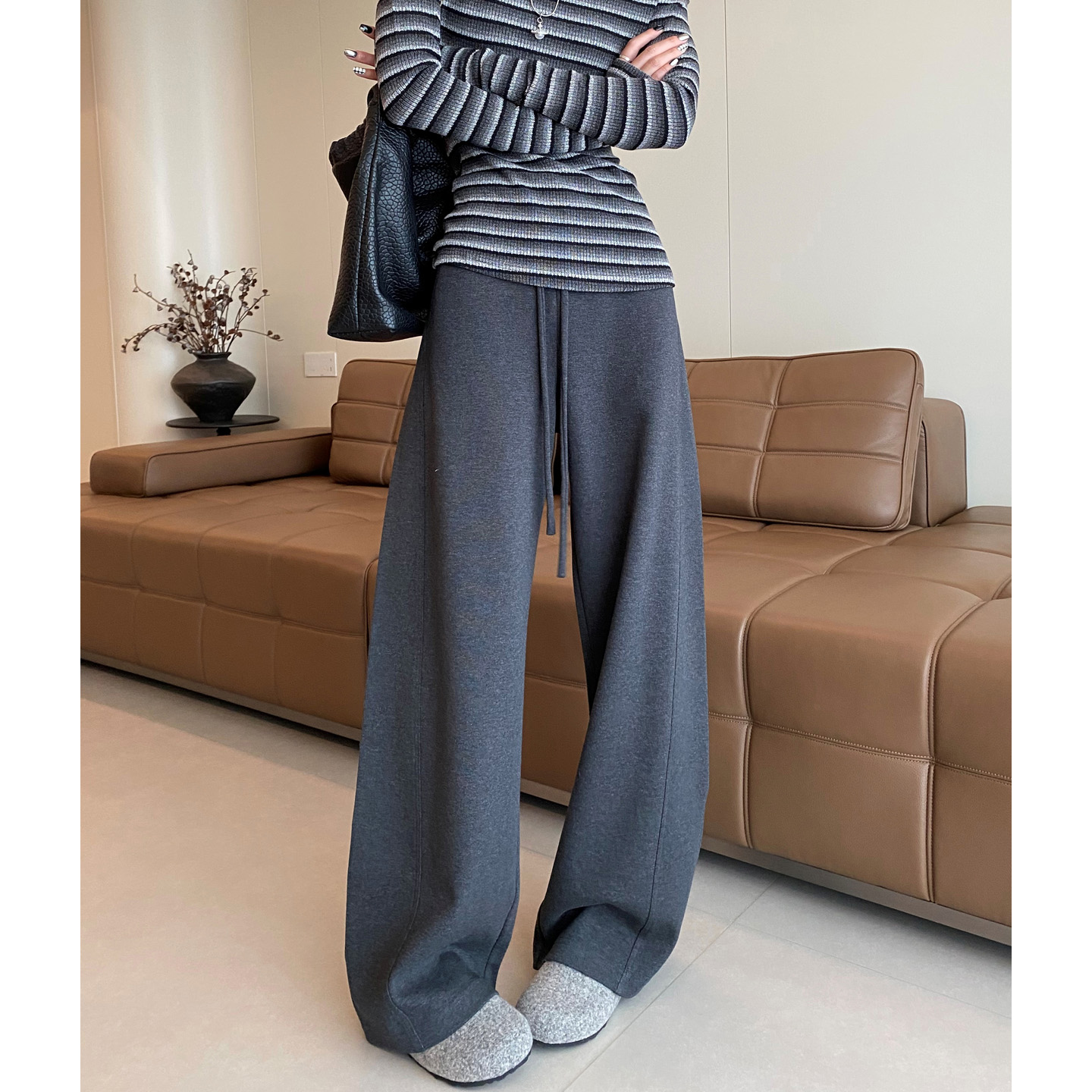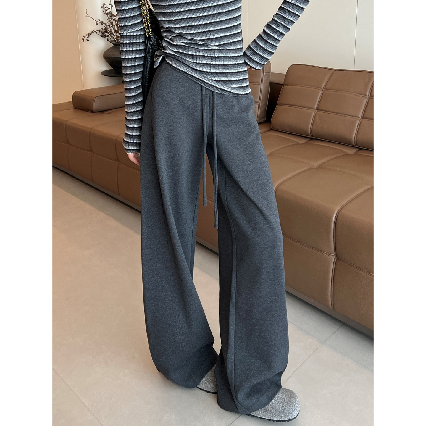 休闲弯刀裤 灰色运动阔腿裤 加厚高腰宽松显瘦卫裤 新款 女2025秋冬季