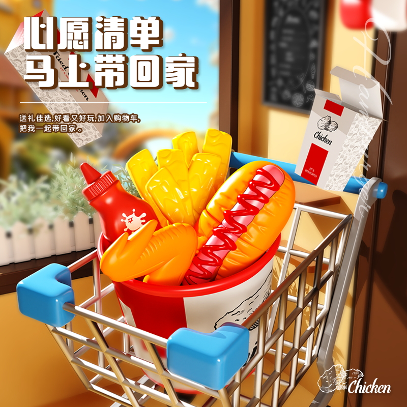 美食快餐车儿童手工diy玩具微缩糖水礼物益智过家家迷你食玩厨房