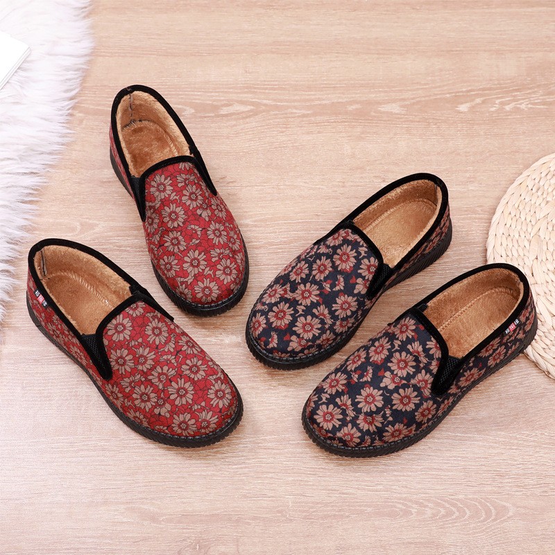 冬季 女加绒保暖防滑一脚蹬妈妈鞋 加厚雪地靴女 老北京棉鞋 2024新款