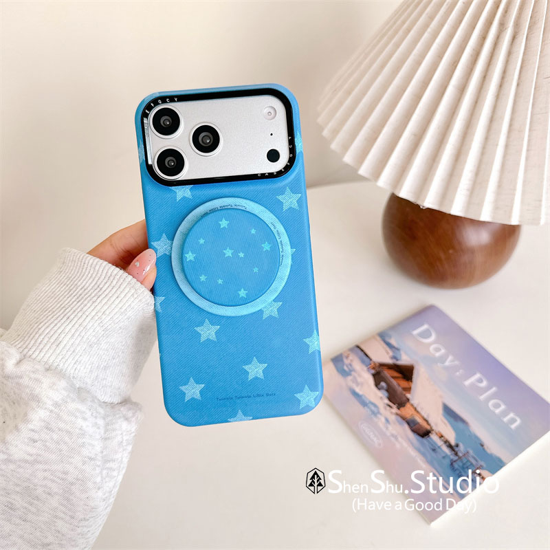 绅树 15Promax保护套13硬壳情侣 菲林蓝色星星磁吸支架ins14适用17pro苹果17ProMax手机壳iPhone16三包17新款