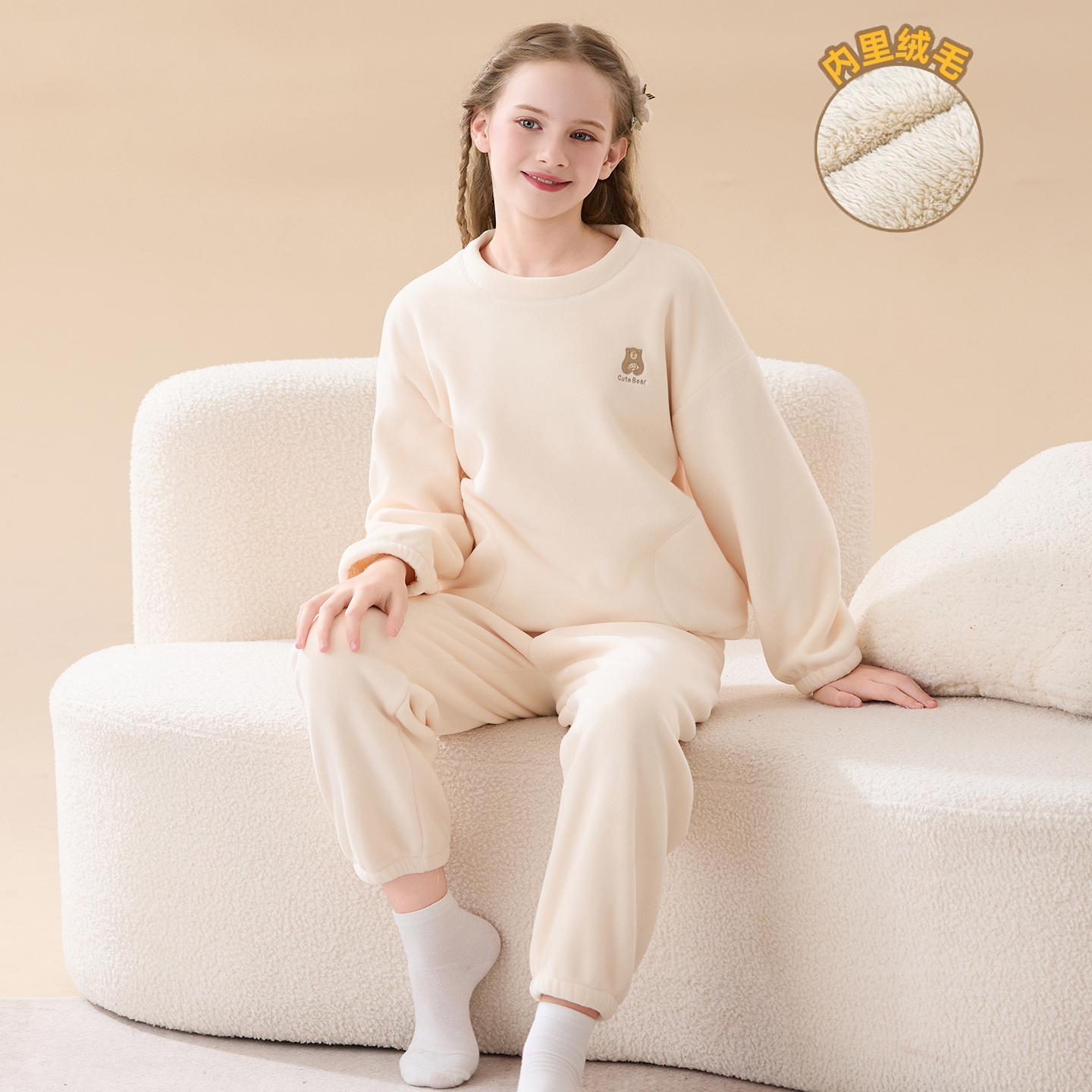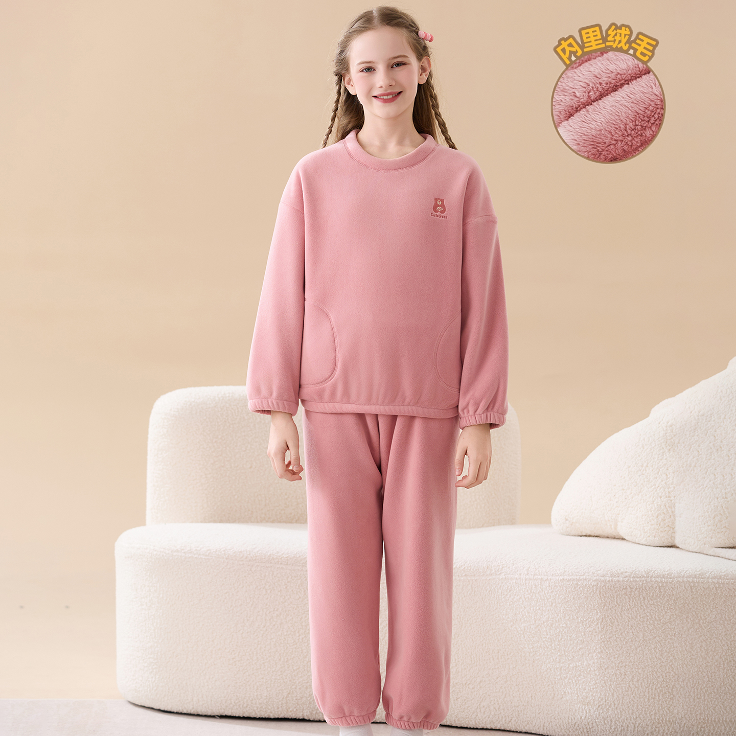 女童秋冬法兰绒睡衣加绒加厚a类中大童女孩保暖家居服套装 珊瑚绒
