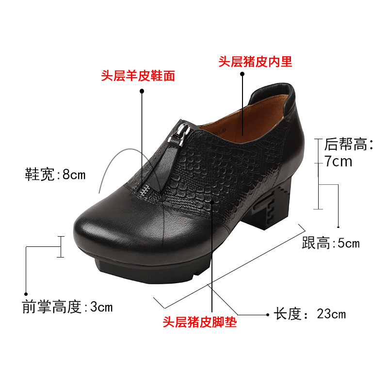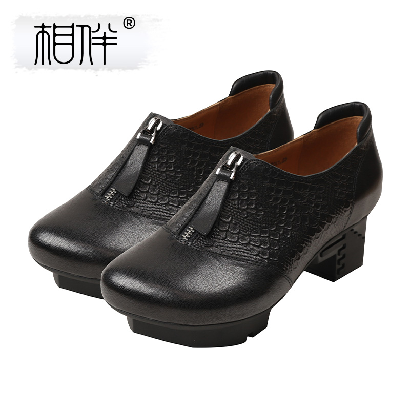 粗跟女皮鞋 相伴真皮单鞋 软底软面舒适休闲鞋 春秋妈妈鞋 女2025新款