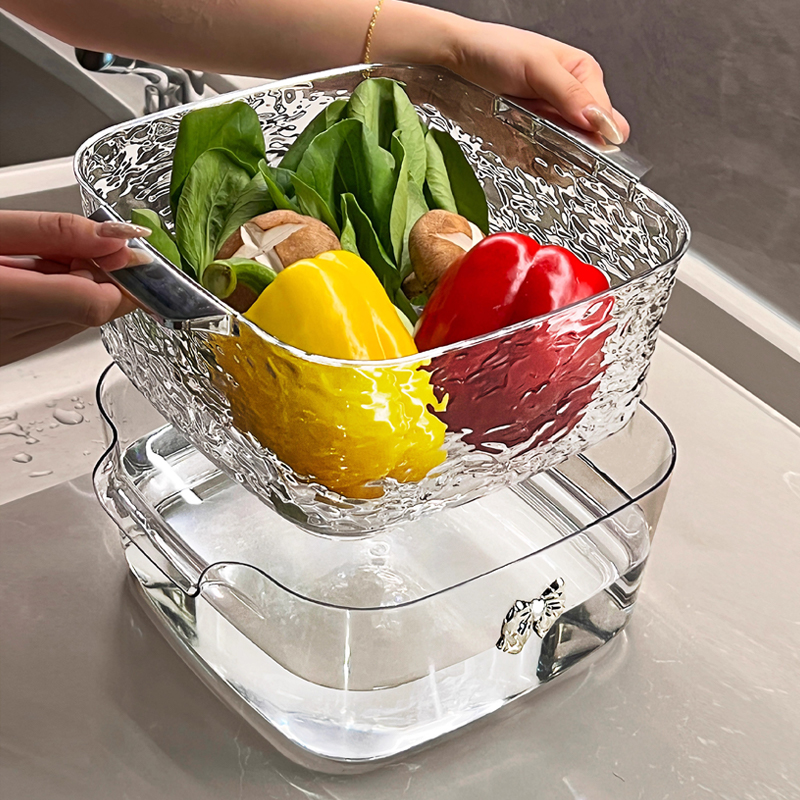 新款 厨房家用洗菜盆盘客厅洗菜篮 高颜值双层洗水果沥水篮2025新款