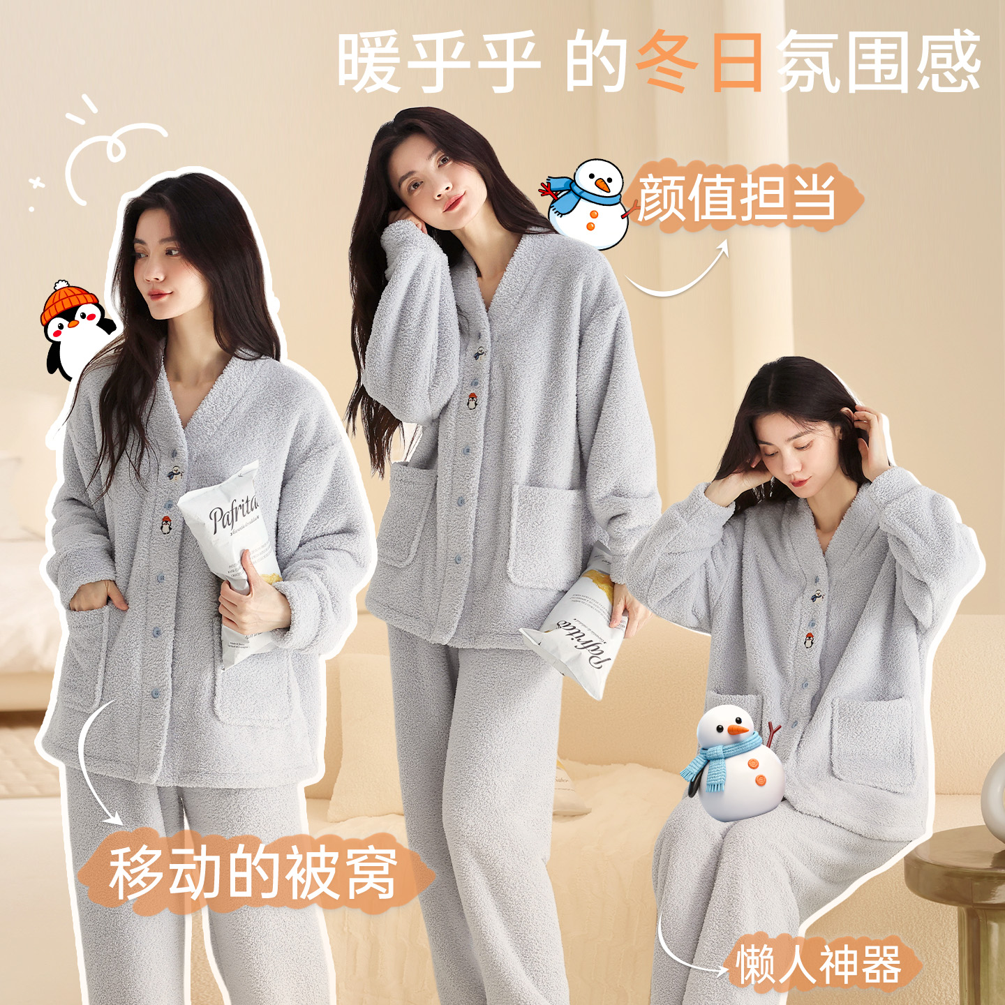 都市丽人睡衣女冬加绒加厚2025新款 秋冬半边绒保暖卡通家居服套装