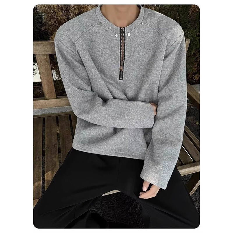 四条杠BF外套潮 套头打底衫 华夫格卫衣男秋冬美式 宽松百搭圆领长袖