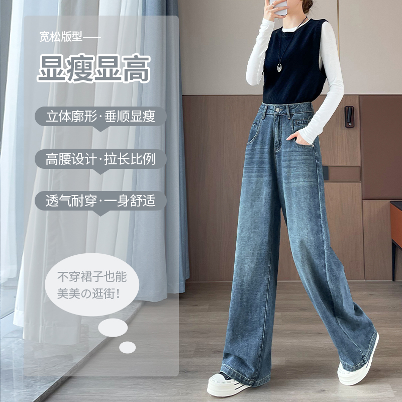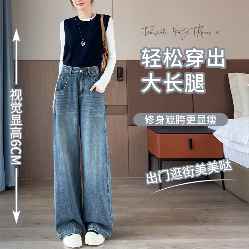 牛仔裤 裤 女2025秋冬新款 小个子窄版 子 爆款 浅色高腰阔腿宽松直筒裤