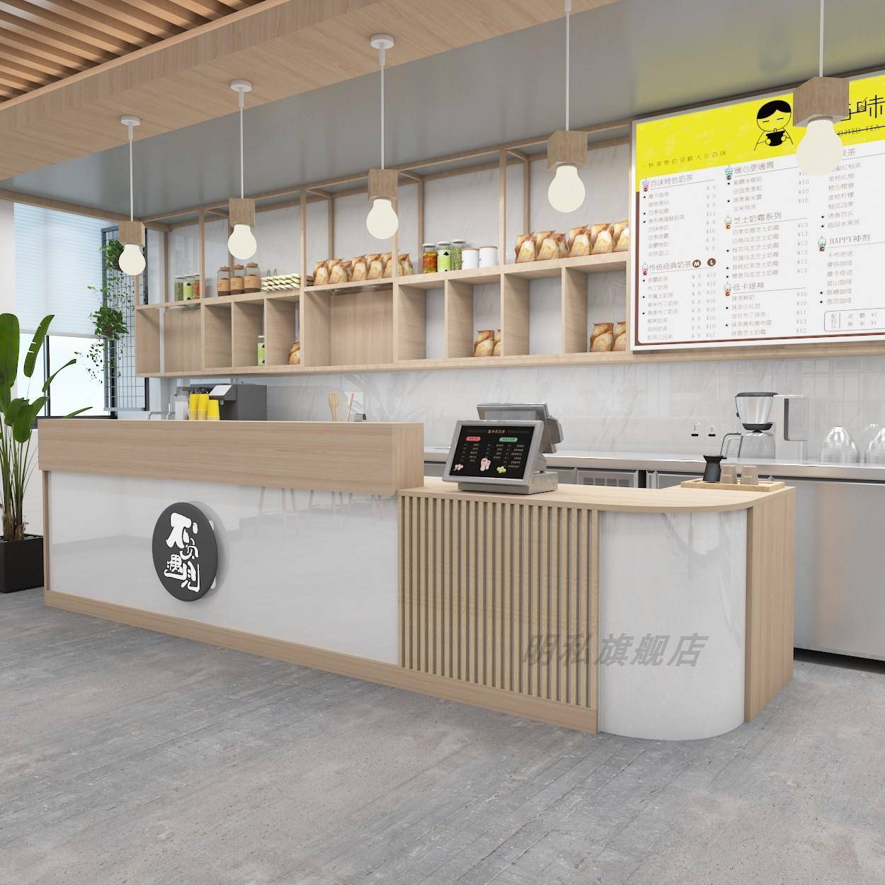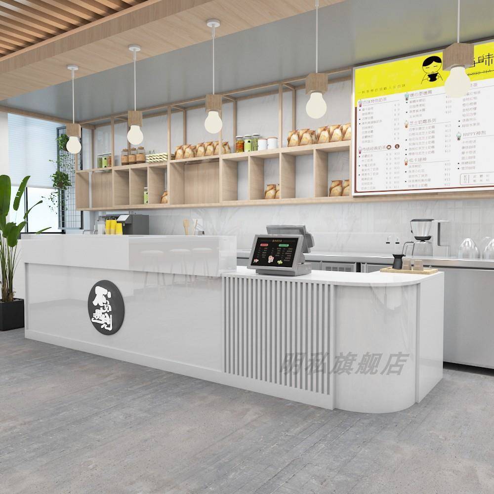 定制弧形奶茶吧台汉堡收银台店铺小型蛋糕店服装 柜台转角公司前台