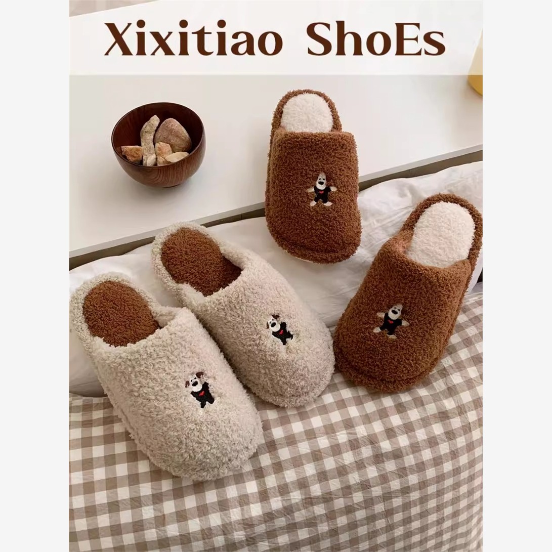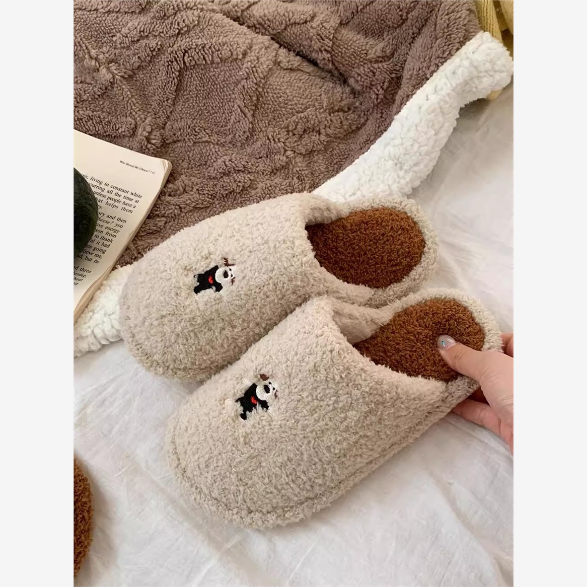 ins情侣居家保暖防滑毛毛鞋 可爱毛毛棉拖趣味小狗棉拖鞋 男女冬季