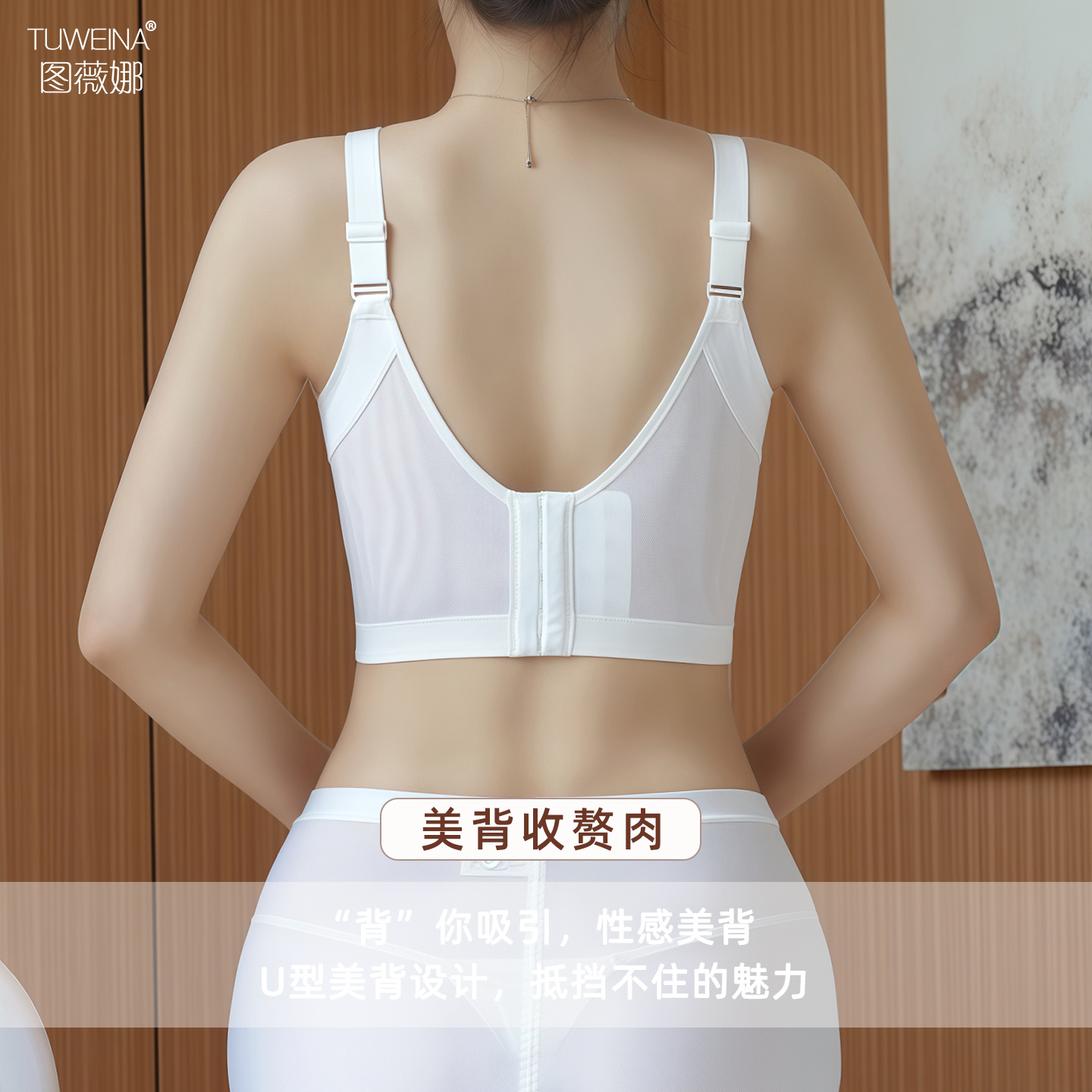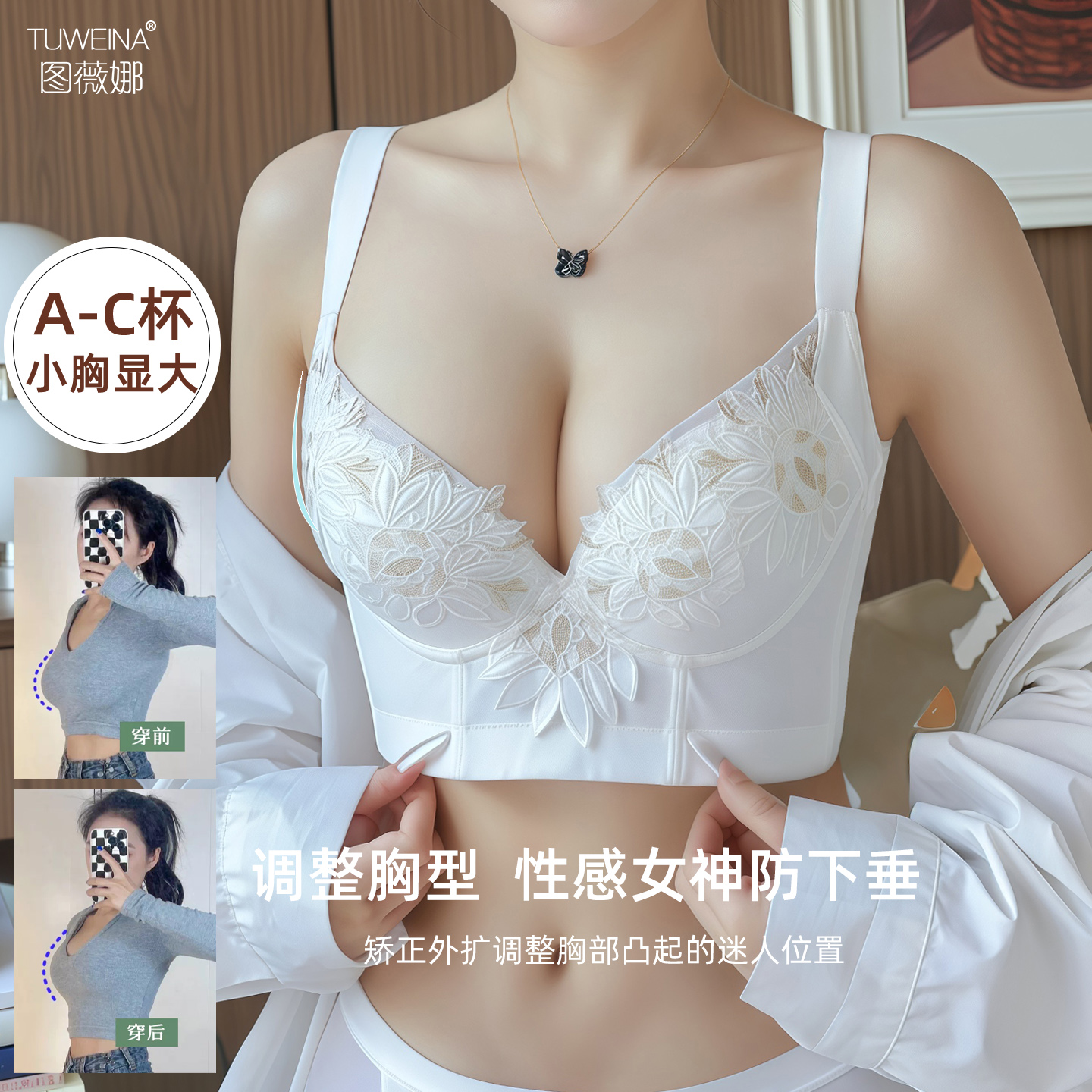 图薇娜调整型文胸白色聚拢收副乳内衣莫代尔防下垂小胸黑色胸罩女