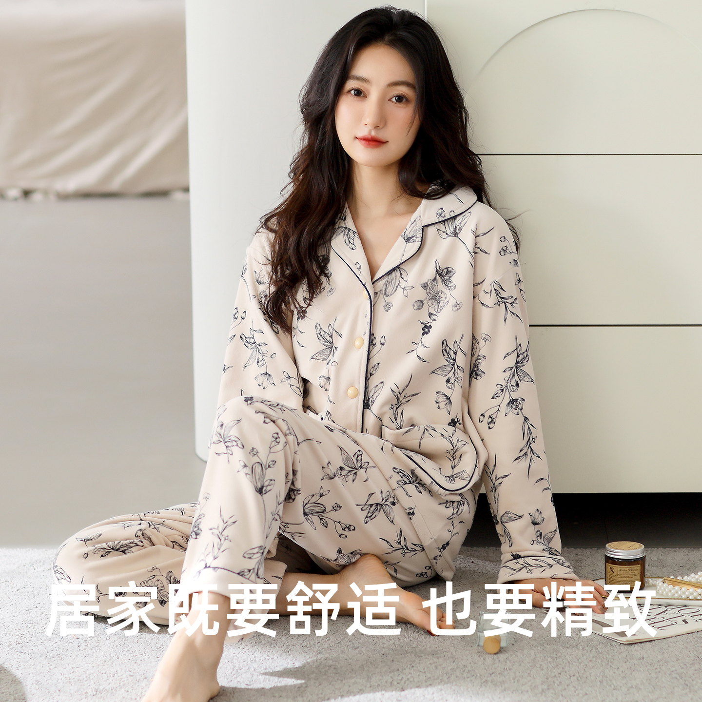 长袖 家居服套装 长裤 大码 可外穿 2025新款 猫人纯棉睡衣女士春秋季