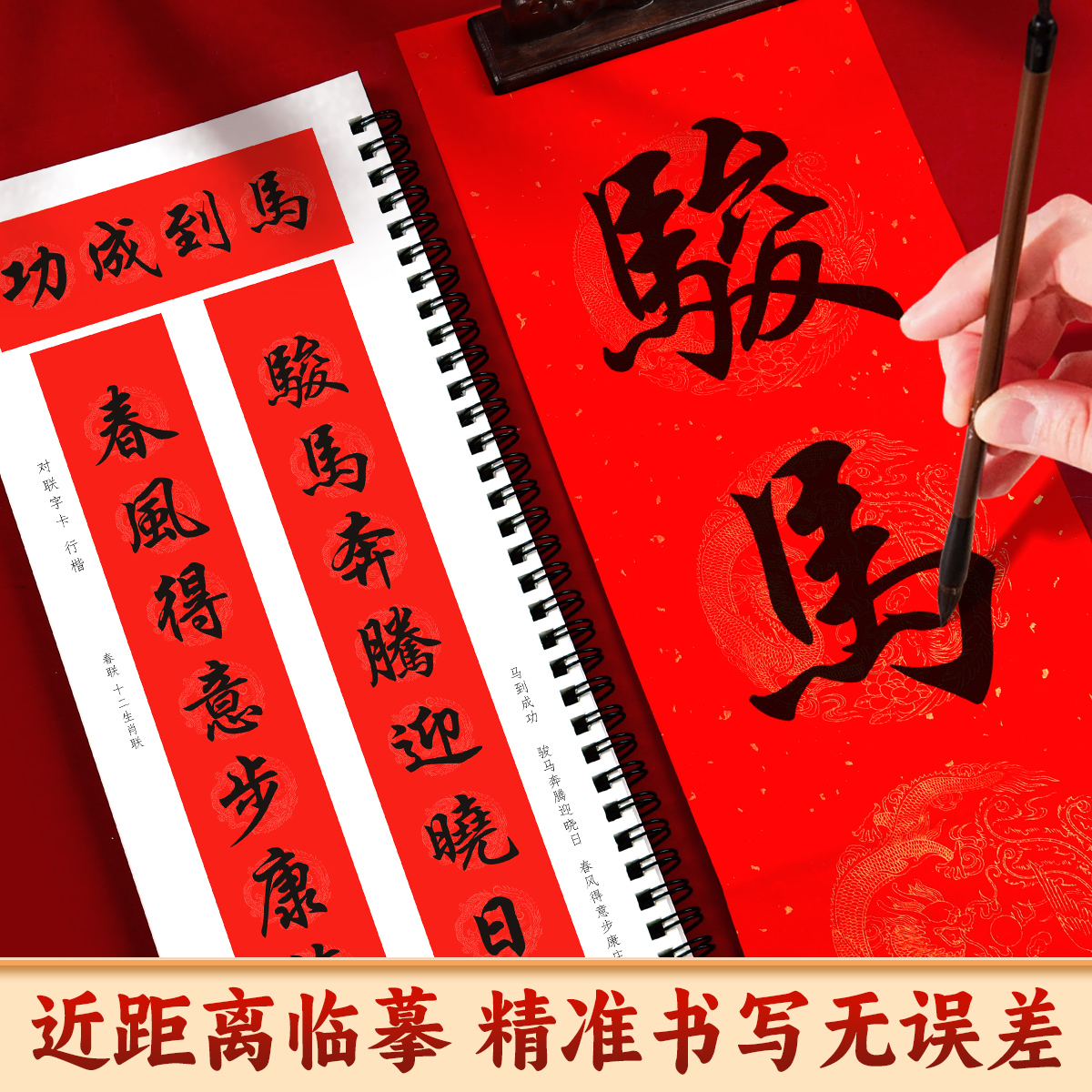 书行新版 2026对联字卡行楷近距离临摹写字卡成人毛笔书法马年新年春联对联十二生肖辞旧迎新招财进宝福字集锦描摹素材贺联挽联字帖