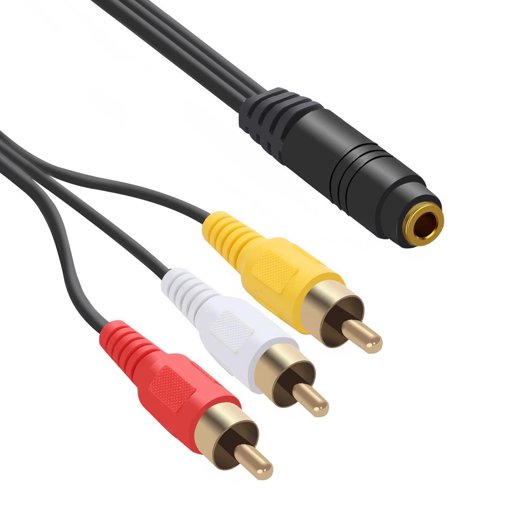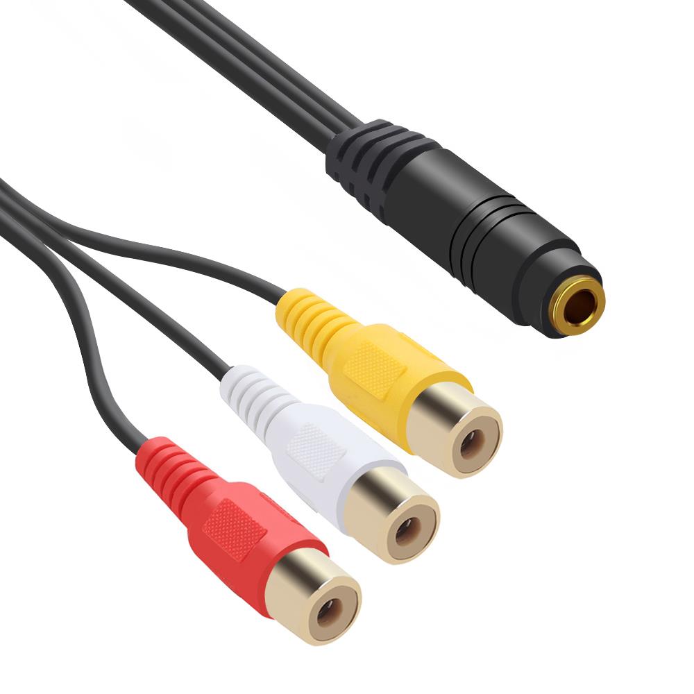 3.5mm母一分三AV公莲花RCA转接线 电视3合1音频视频线 3.5转AV座