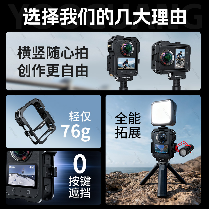 优创谷适用Dji大疆osmo360金属兔笼磁吸快拆拓展边框全景相机保护套壳防摔壳大疆360骑行配件 包邮 顺丰