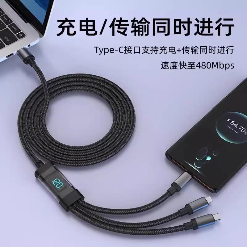 c充电器三合一数据线100W超级快充一拖三6A充电线适用苹果OPPO小米VIVO通 适用于iphone手机type 天猫正品