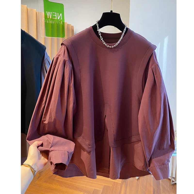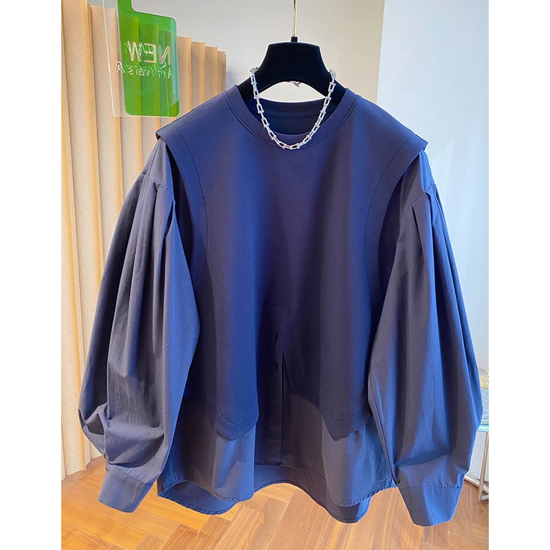 胖妹妹设计感小众法式 长袖 漂亮小衫 女2025春秋新款 假两件上衣 衬衫