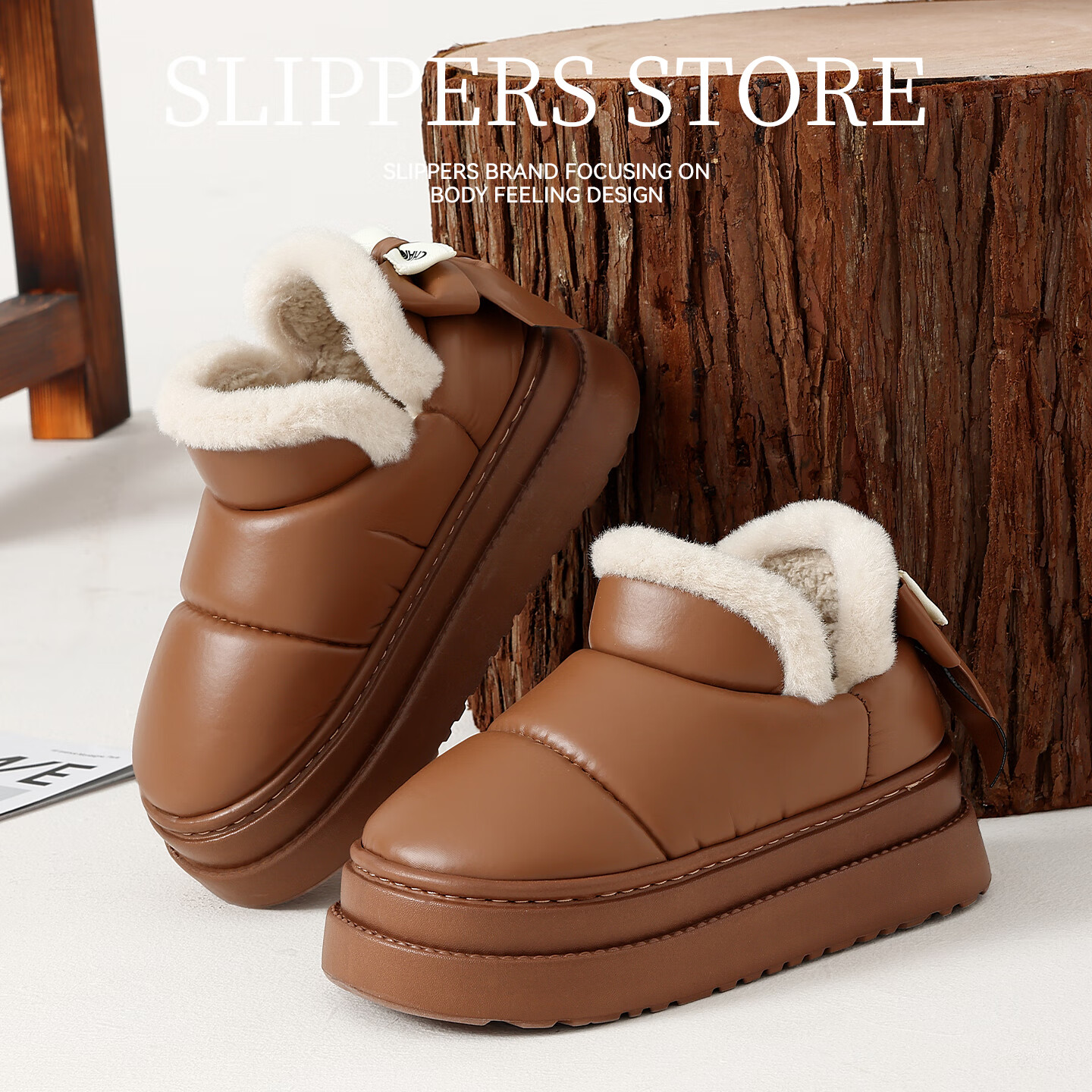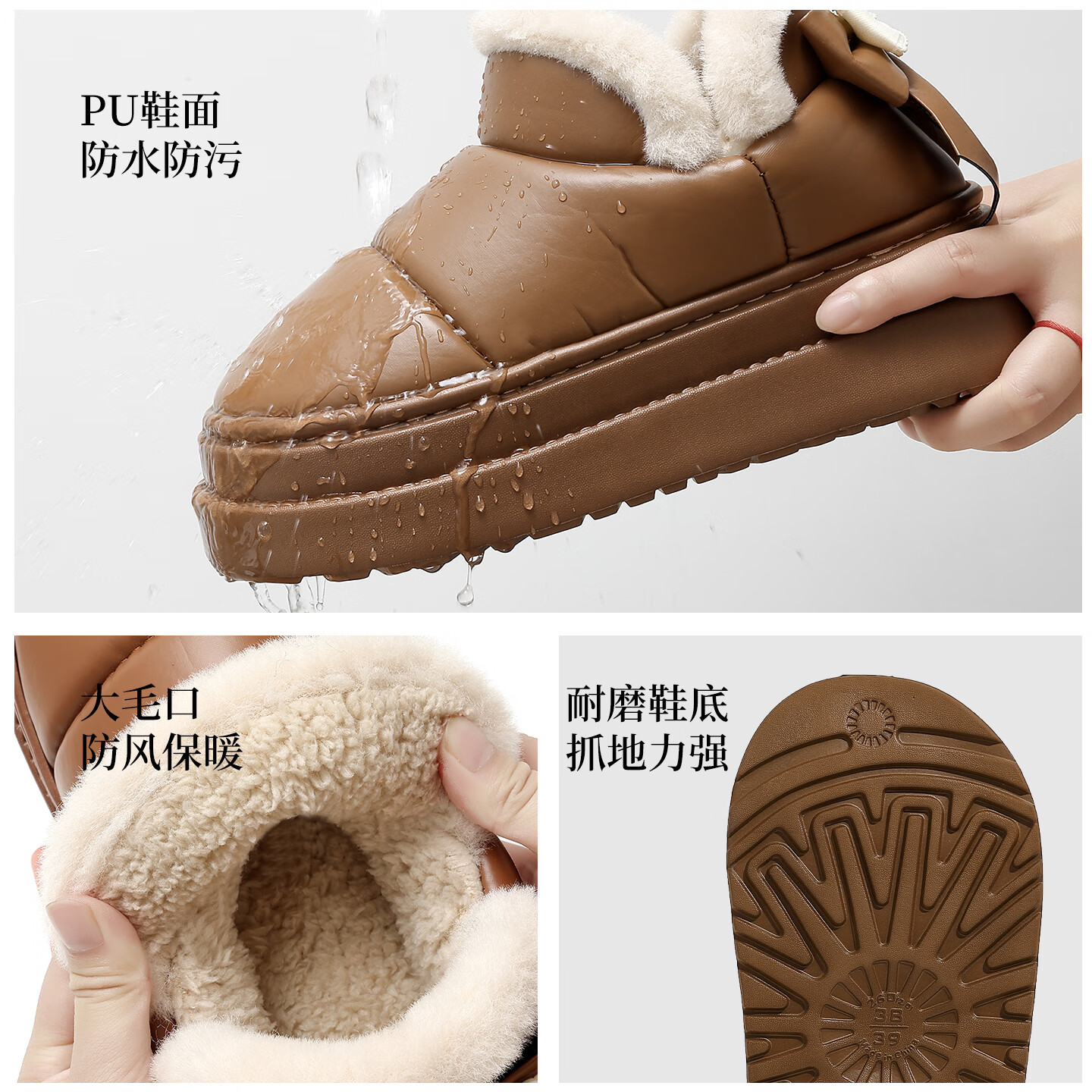 面耐磨防滑雪地靴男士 高帮棉拖鞋 女士可外穿加厚加绒保暖PU防水鞋