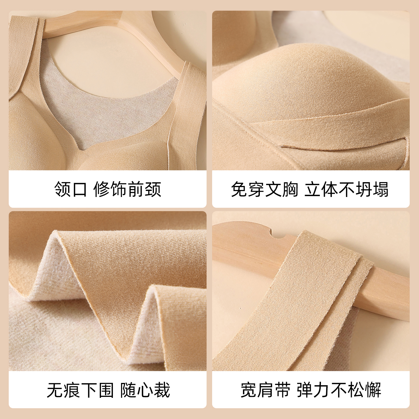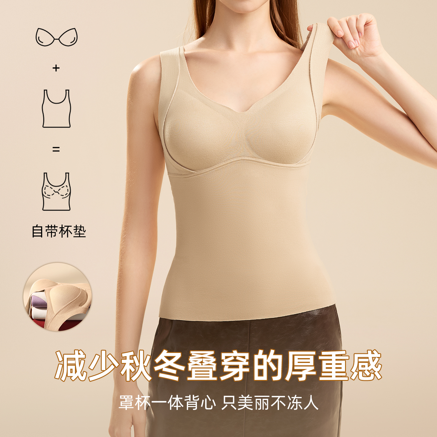 浪莎保暖背心女带胸垫一体式 羊绒蚕丝美背内搭打底衣秋冬2025新款