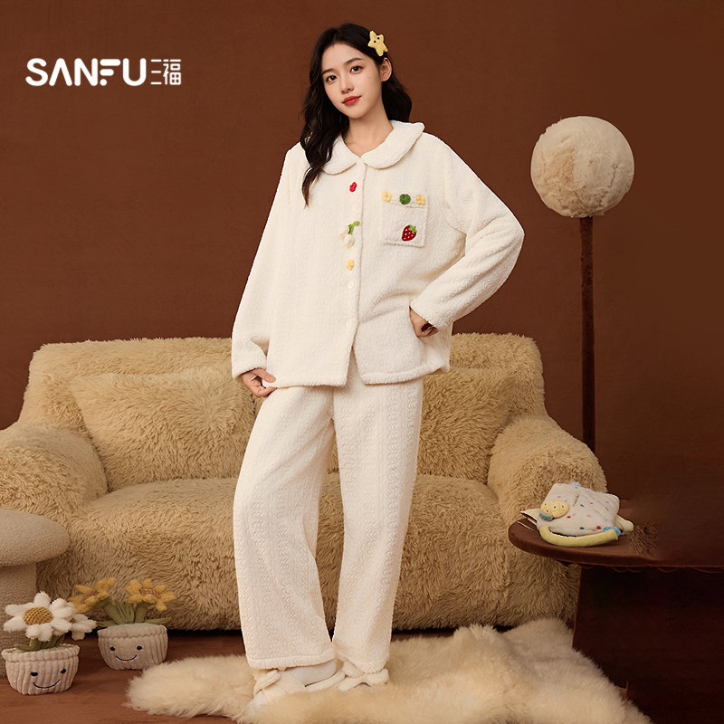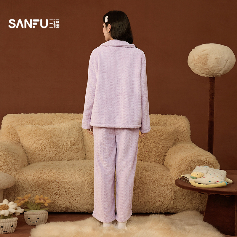 套装 珊瑚绒加厚加绒保暖法兰绒家居服大码 冬天冬款 睡衣女士秋冬季