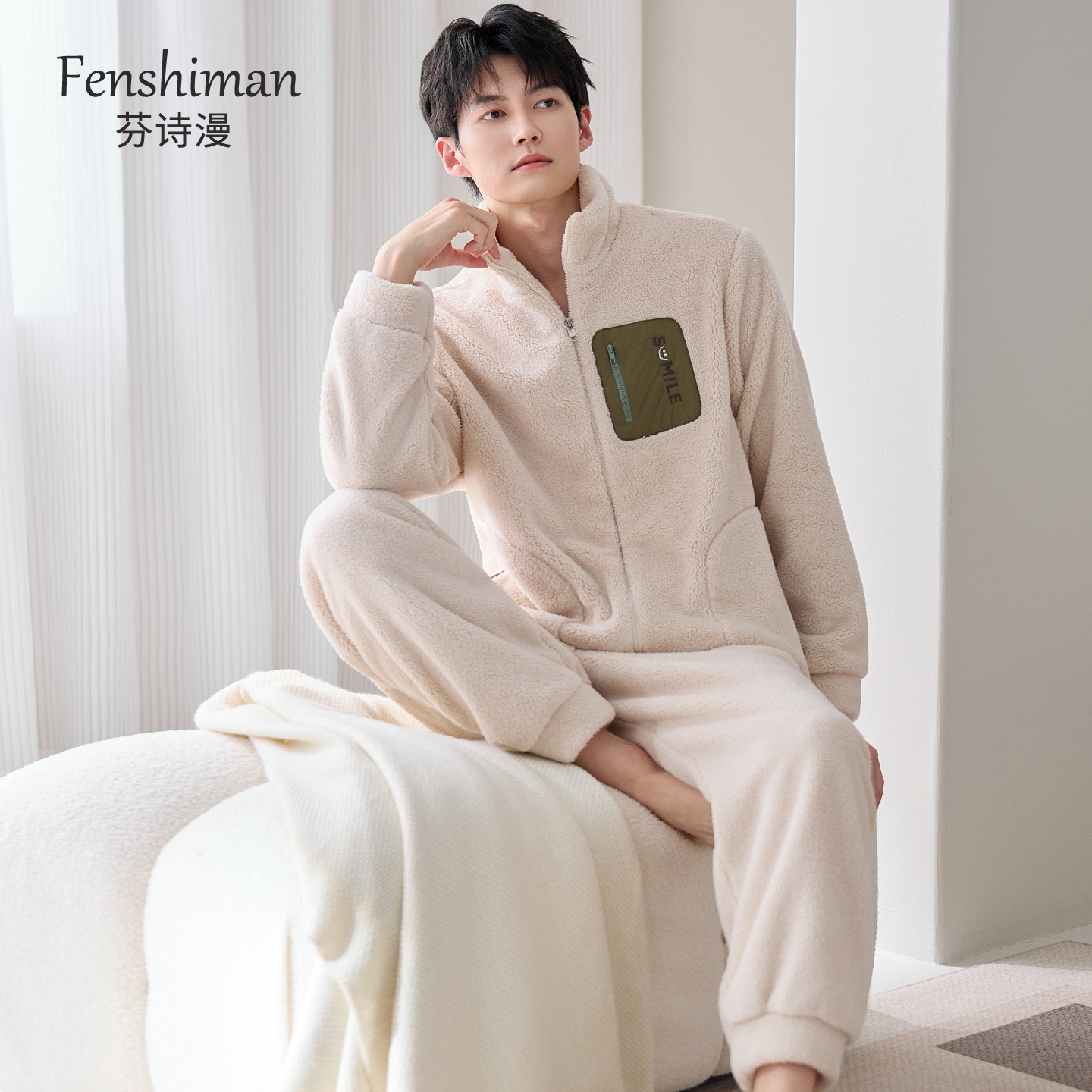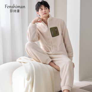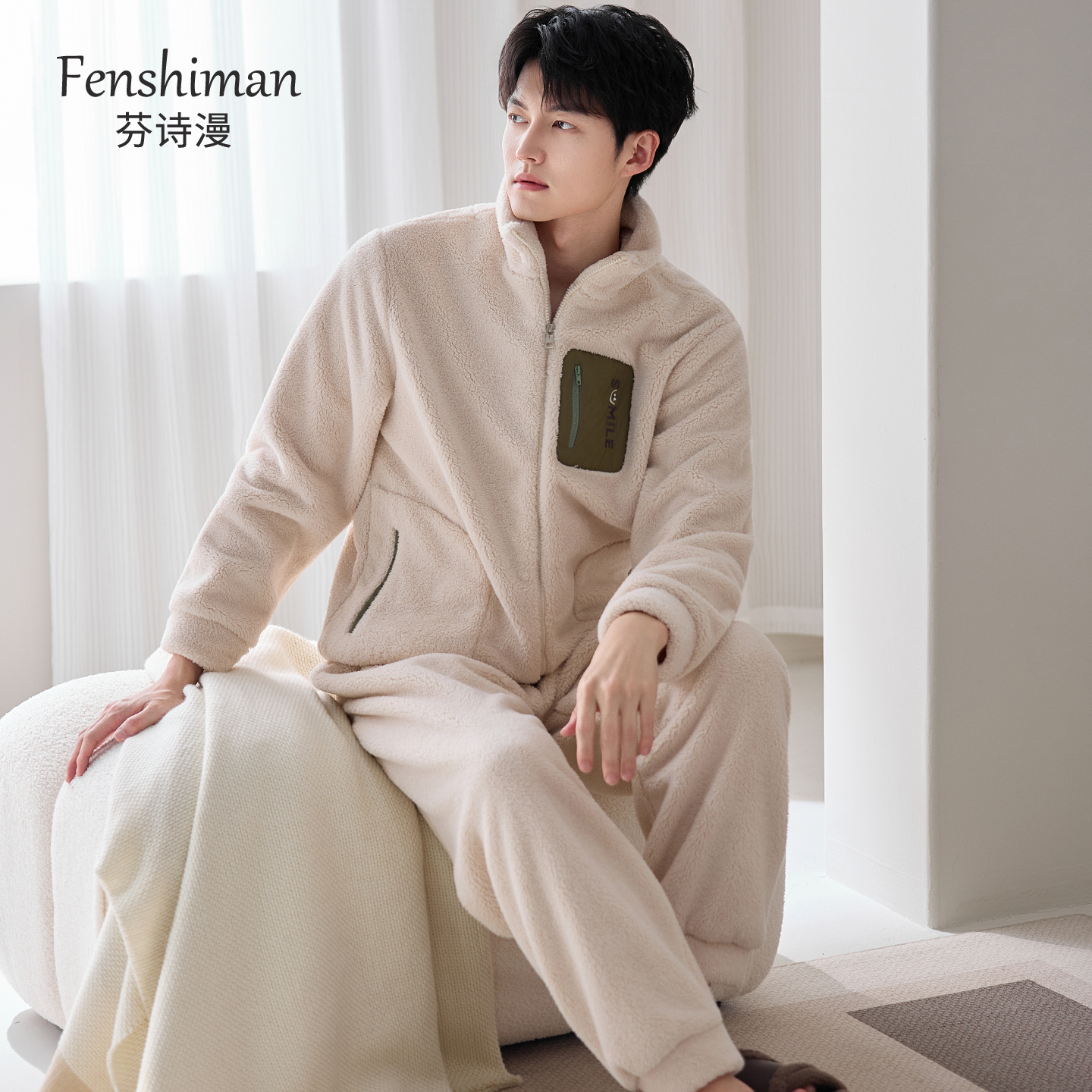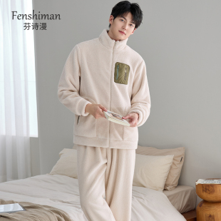 秋冬保暖法兰绒冬款 珊瑚绒加厚加绒男款 羊羔绒家居服 冬季 睡衣男士