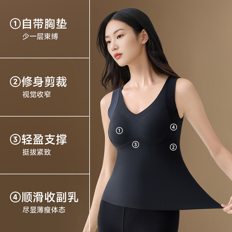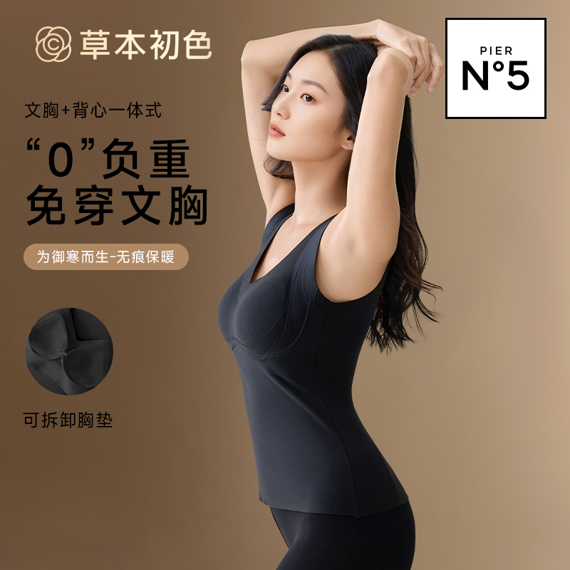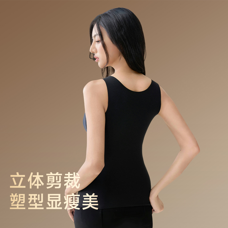 草本初色含绵羊毛双面磨绒带胸垫保暖背心女内搭保暖上衣大码 可穿