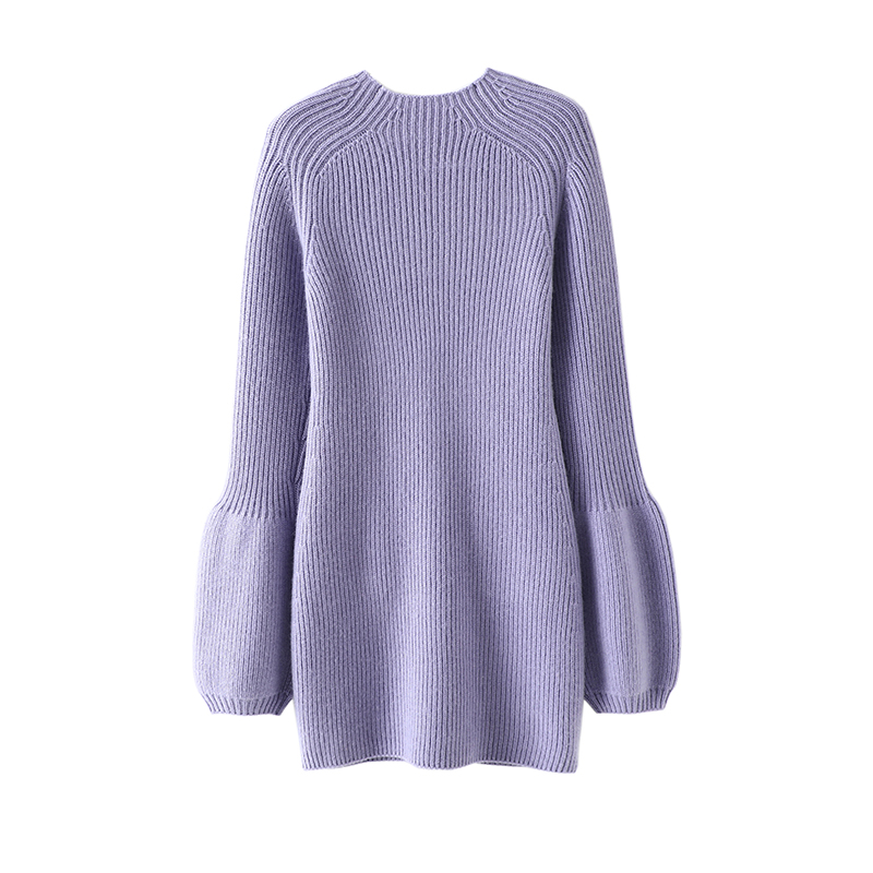 圆领修身 洋气带感 女中长款 羊绒衫 纯羊绒毛衣连衣裙子 加厚灯笼袖