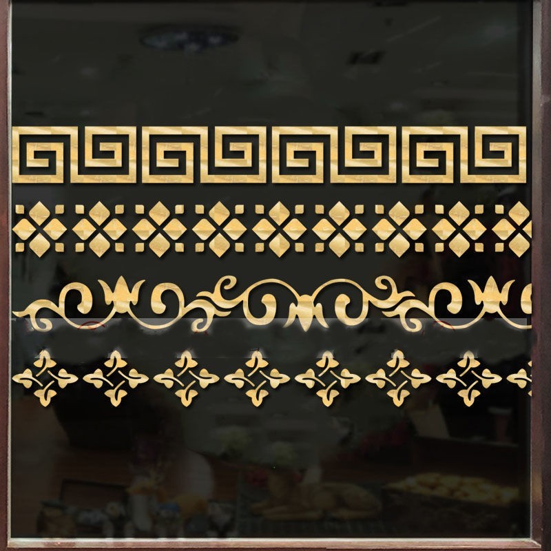 几何图案花边腰线玻璃门贴纸防撞提示美化贴店铺推拉门装 饰布置贴