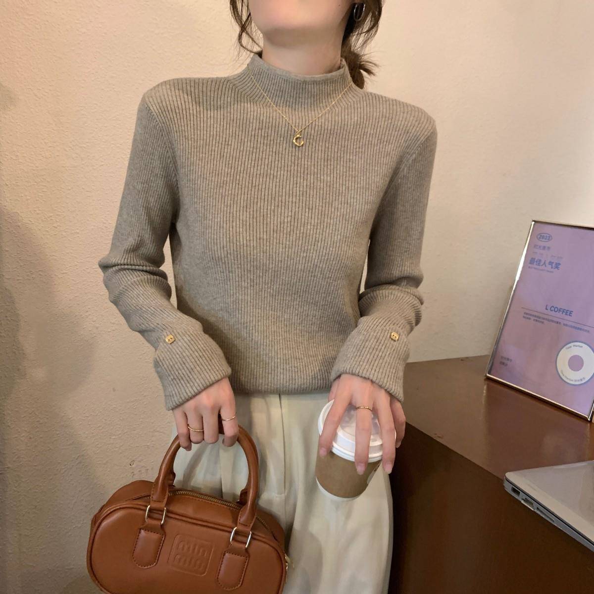 内搭1013c 女半高领洋气针织毛衣修身 冬季 冬2025美拉德咖色打底衫